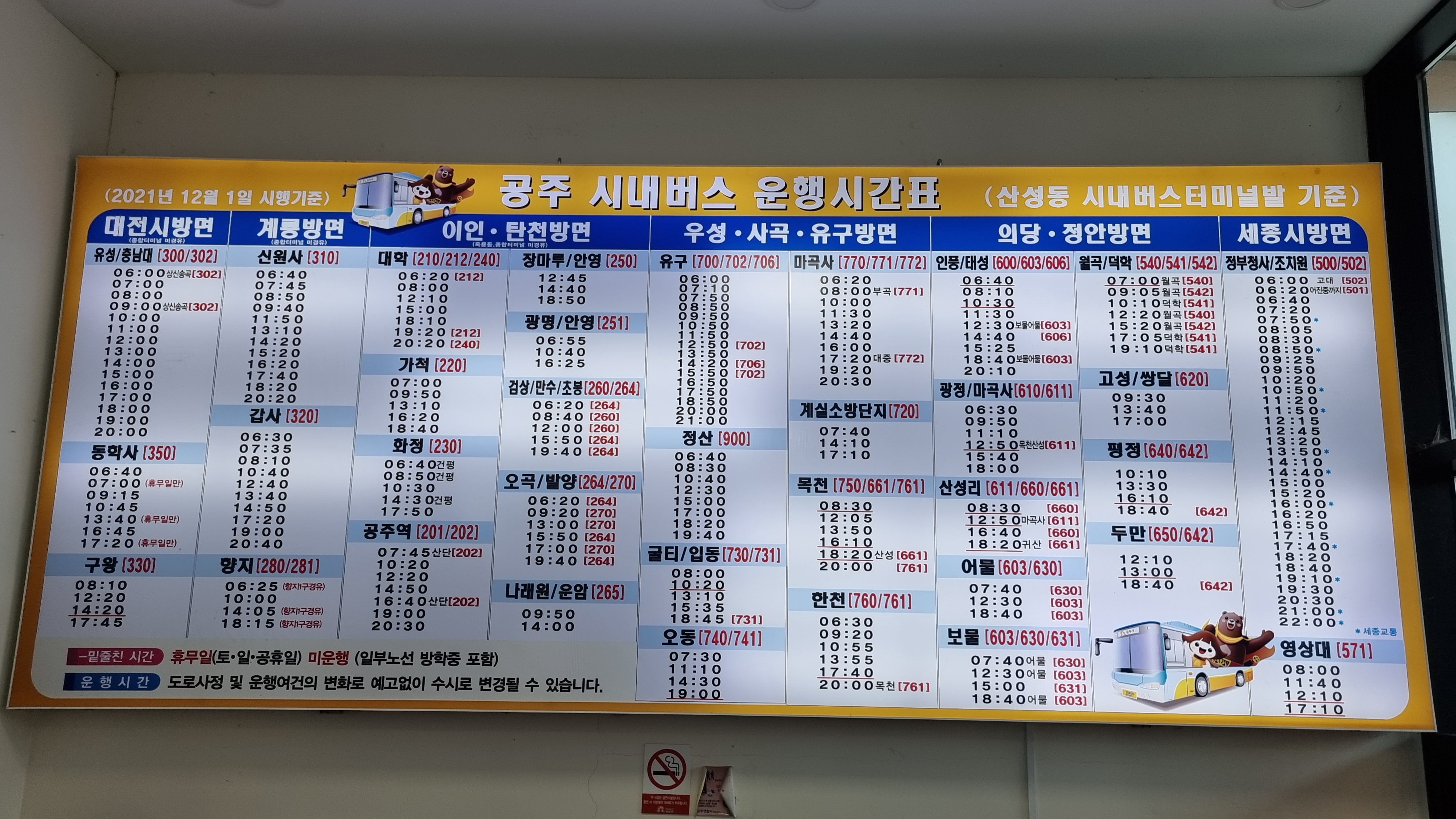 2021년 12월 1일 현재 시행되는 시내버스 시간표이다.