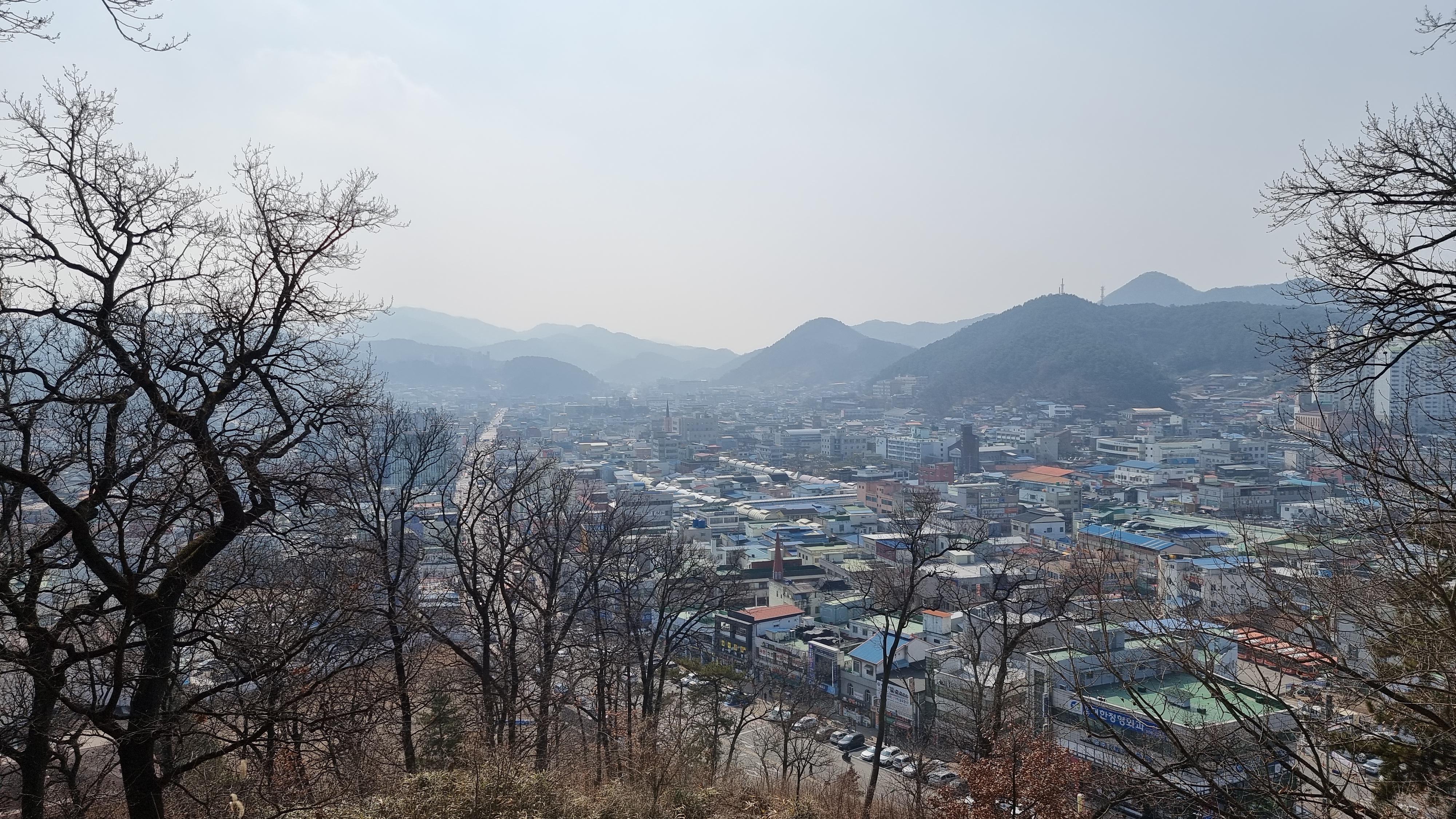공산성 쌍수정 정자에서 공북구 쪽 모습이다.
