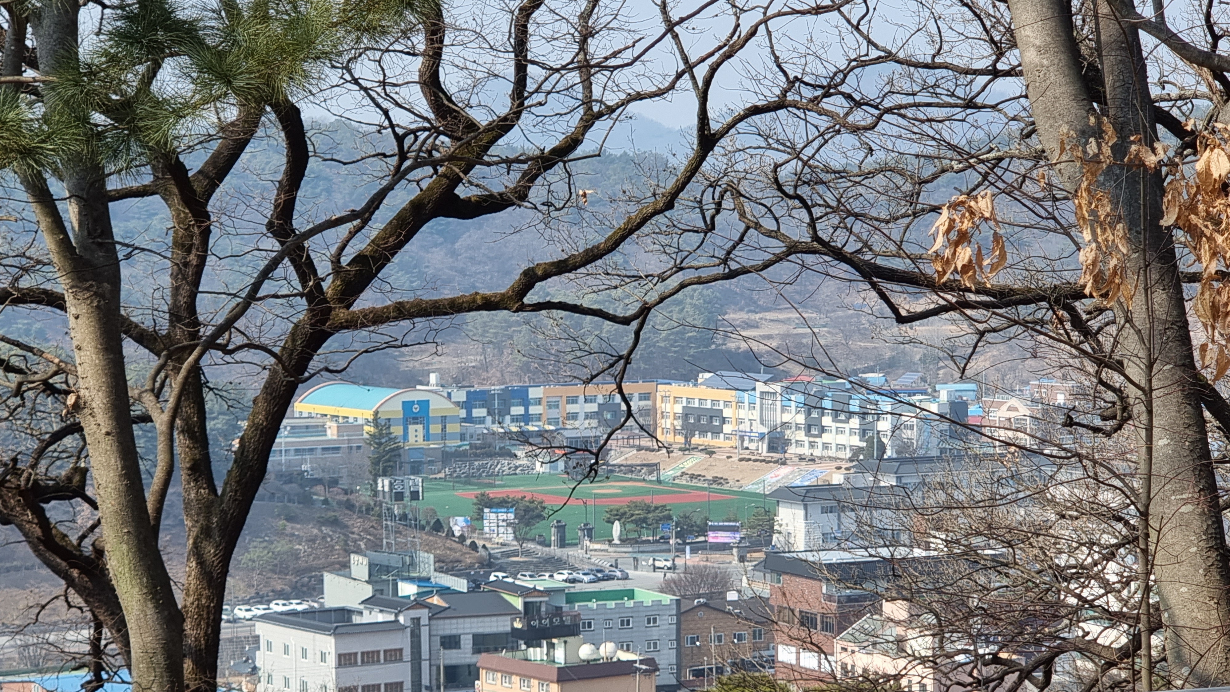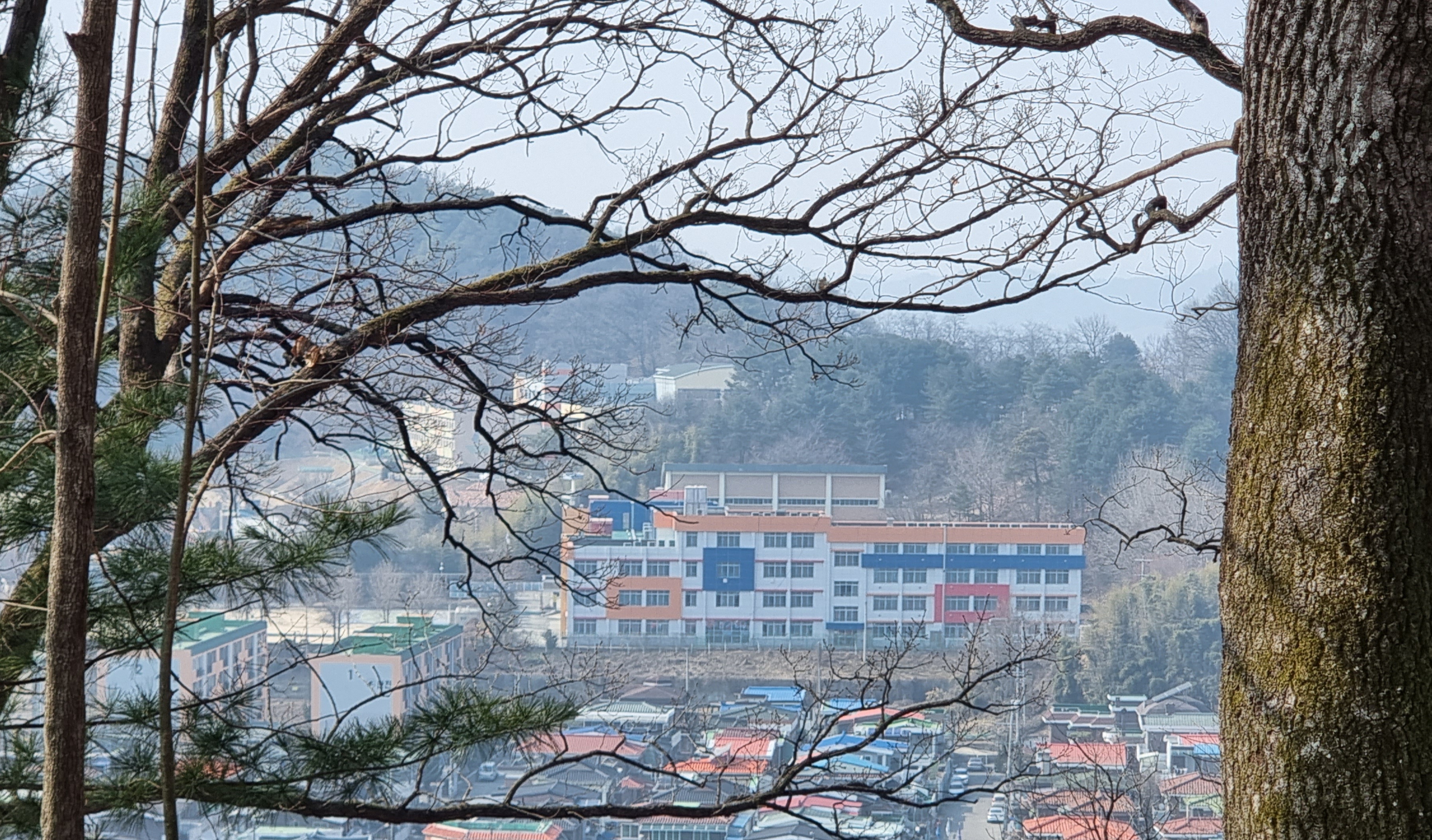 쌍수정에서 보이는 공주여자중학교다. 그 뒤로 공주교동초등학교도 보인다.