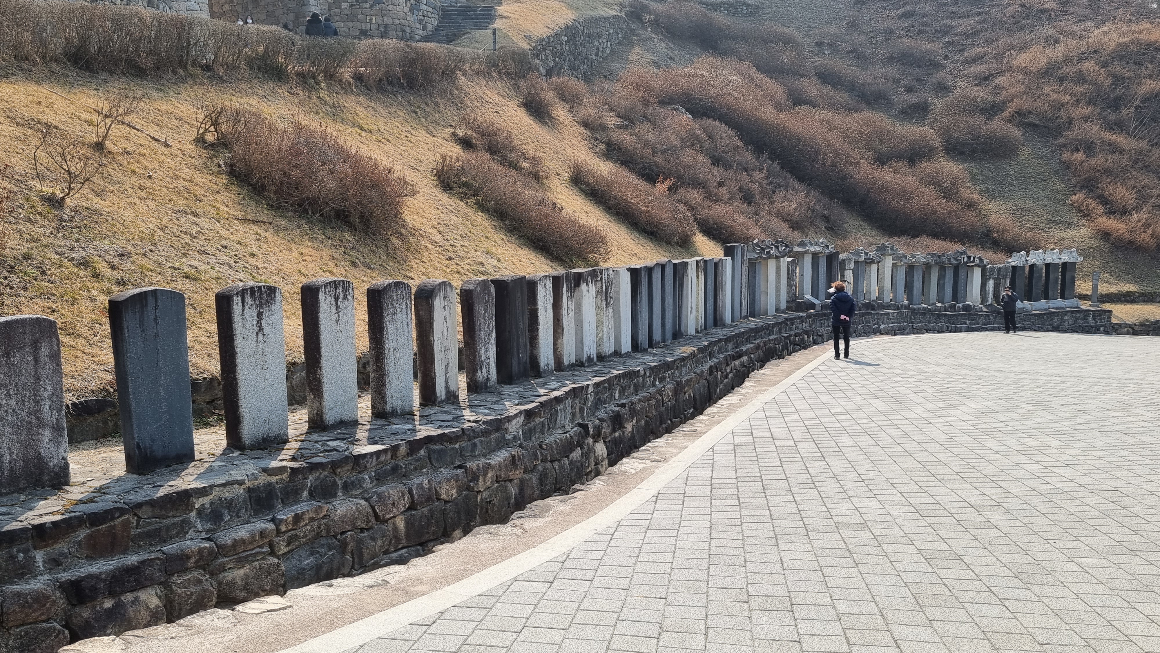 금서루로 오르는 비탈길 가의 비석 군이다.