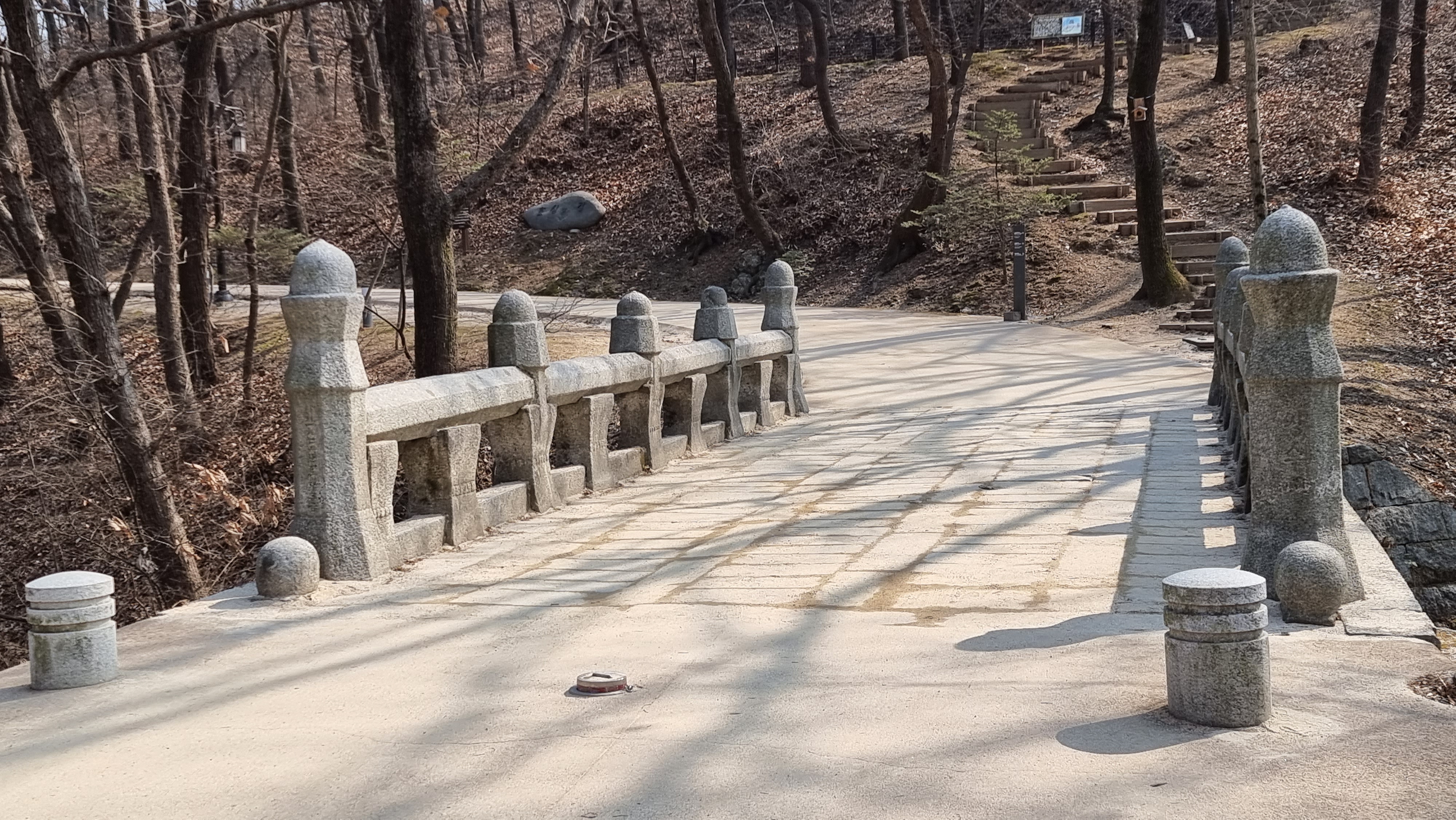 쌍수정으로 오르면서 본 쌍수교 다리 부근 모습이다.