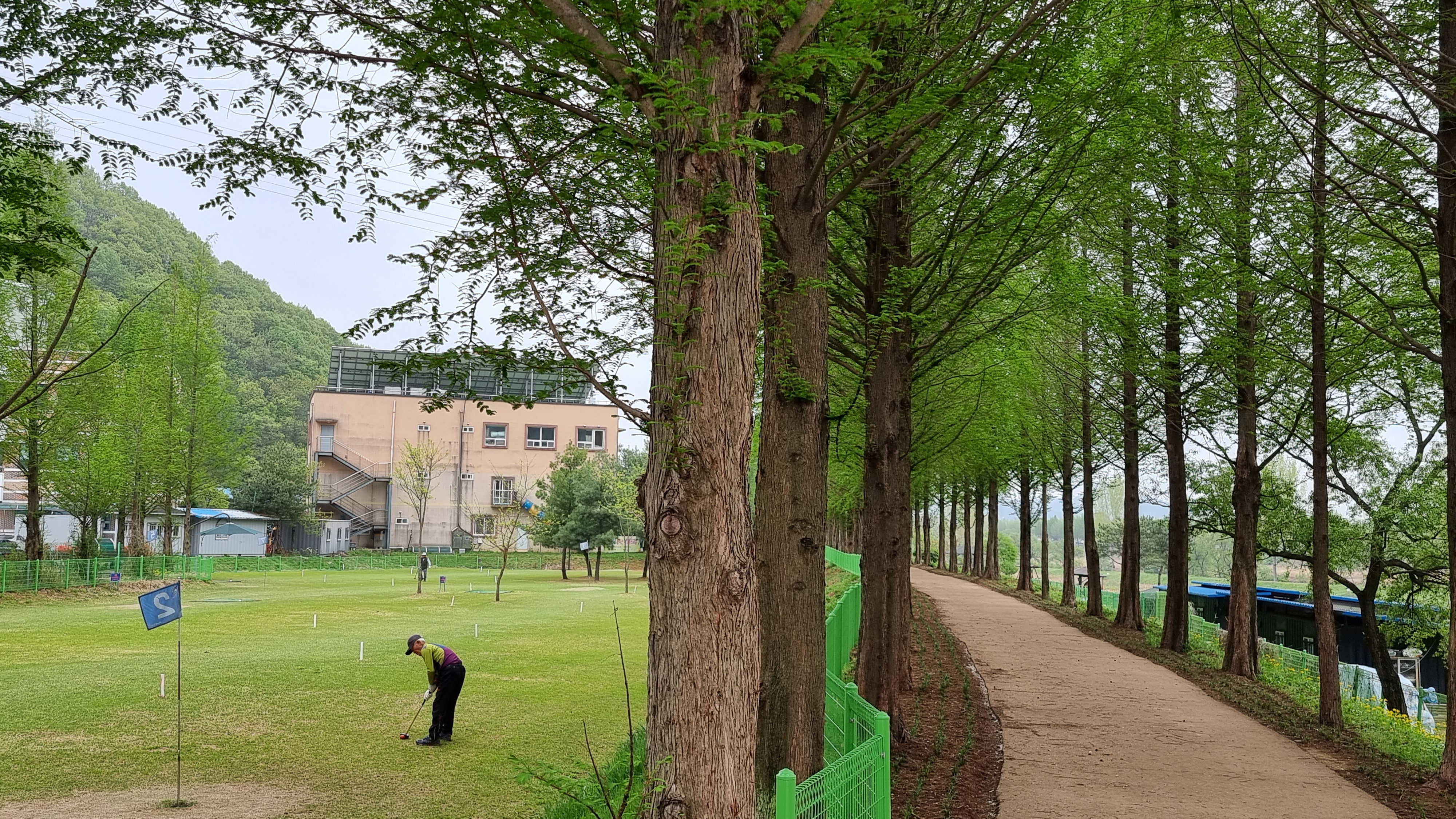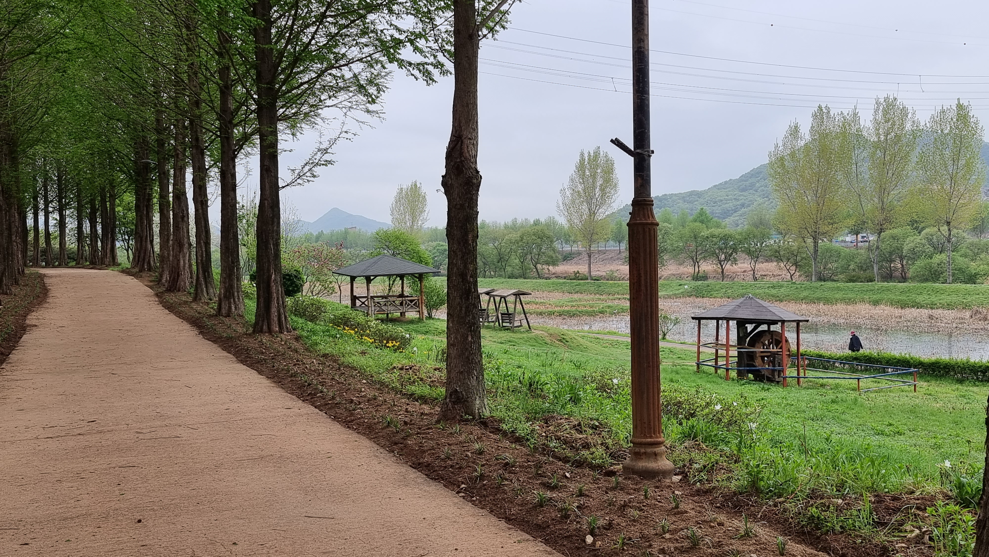 공주시 종합사회복지관을 지나 메타세쿼이아길, 그리고 파크골프장, 그 옆 산책길에서 보이는 산천 초목이 보기 좋은 계절이다. 이런 길이 내 주변에 있기에 좋고, 걸을 수 있는 (아직은 건강한) 양다리가 있음에 감사하며 걷는다. 들판 가운데 냇물 따라 둑길에서 너른 들판을 보며 걸을 수 있는 이곳이기에 날마다 걸으면서 혼자의 생각에 잠길 수도 있고 만나는 동료와 만남의 인사나 관심사에 대한 이야기를 나눌 수 있기에 더욱 좋은 길이다.