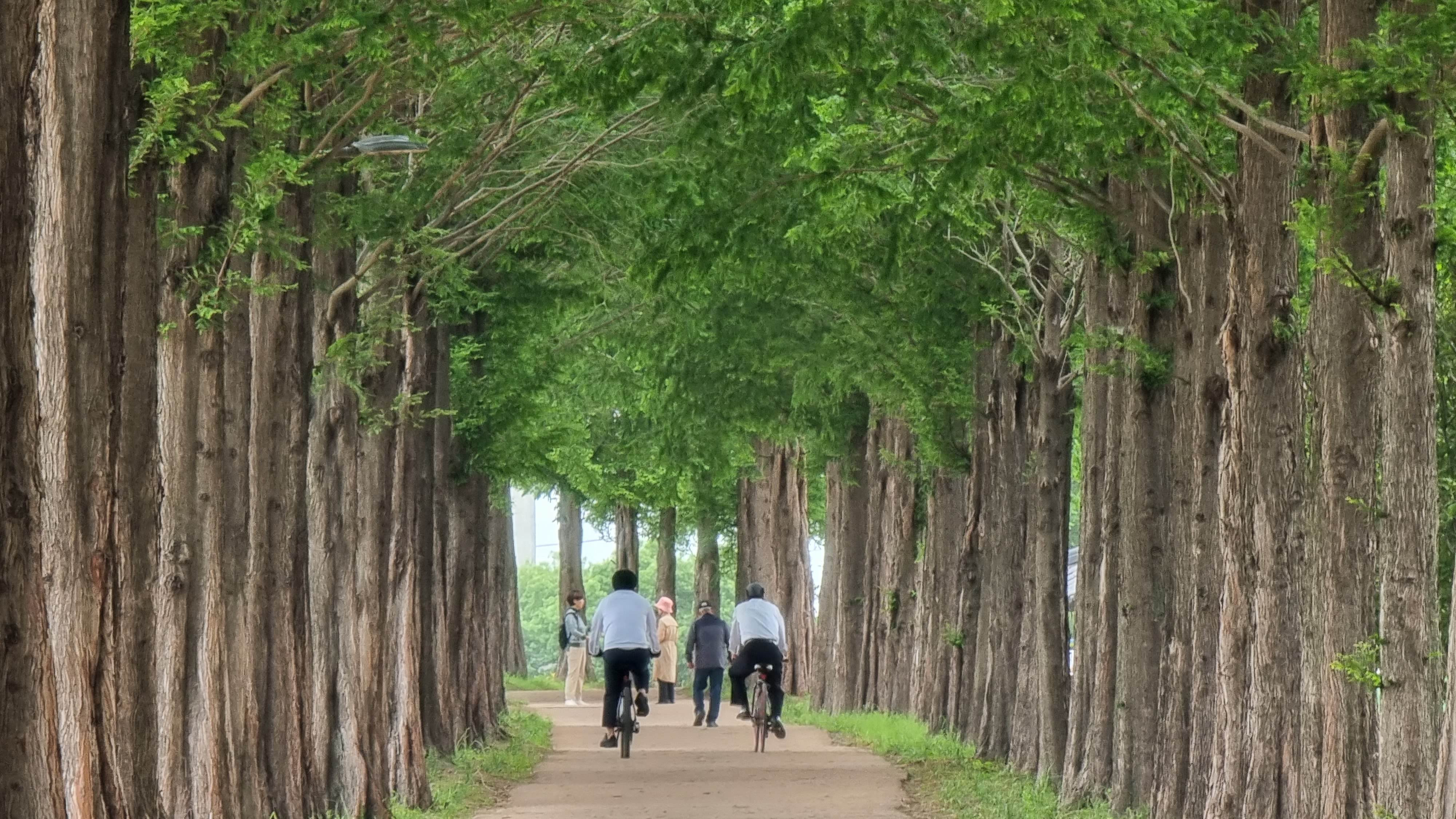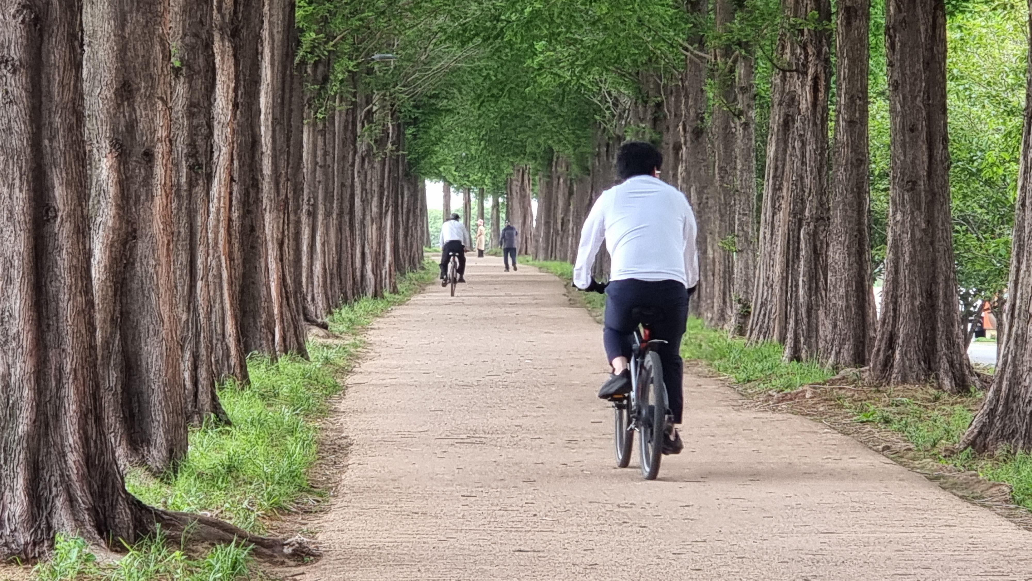 2023년 5월 22일, 공주시 의당면 청룡리 메타세쿼이아 길이 제법 파랗습니다. 언제나 걸어도 상쾌한 길 메타세쿼이아 길을 오늘도 걸었습니다. 나만이 아니라 많은 사람이 걷는 모습입니다. 모든 사람이 이 길을 좋아합니다.