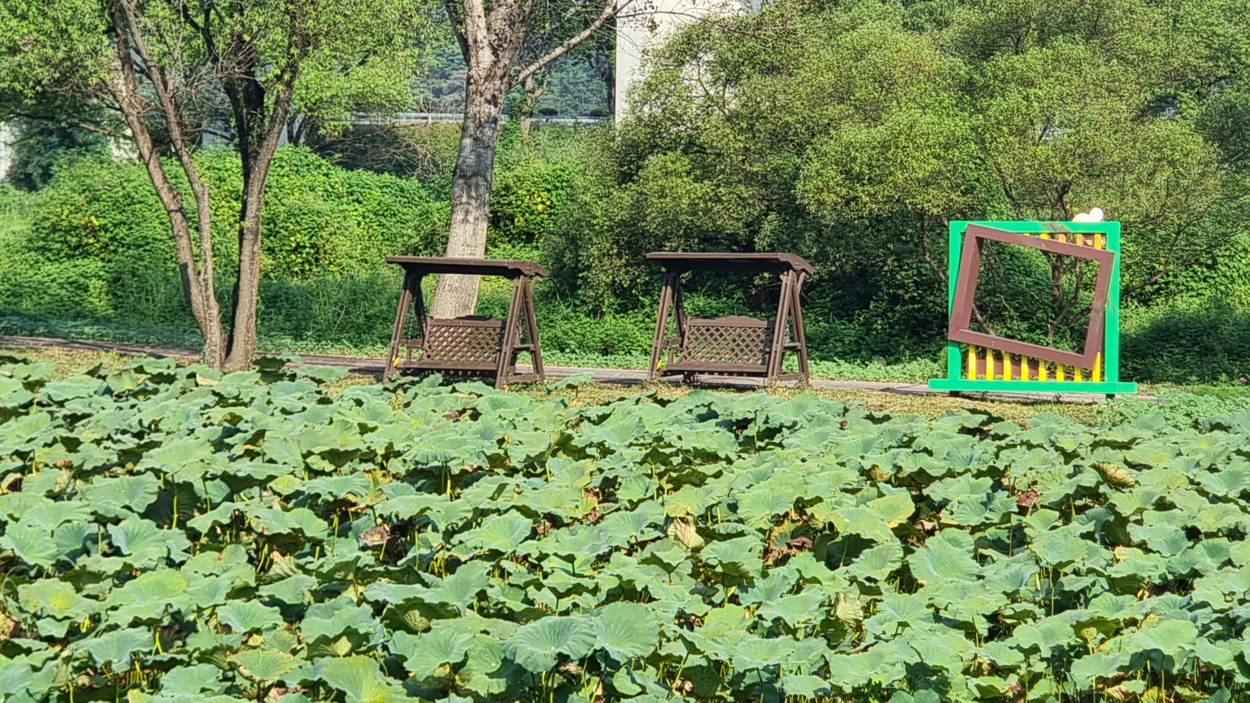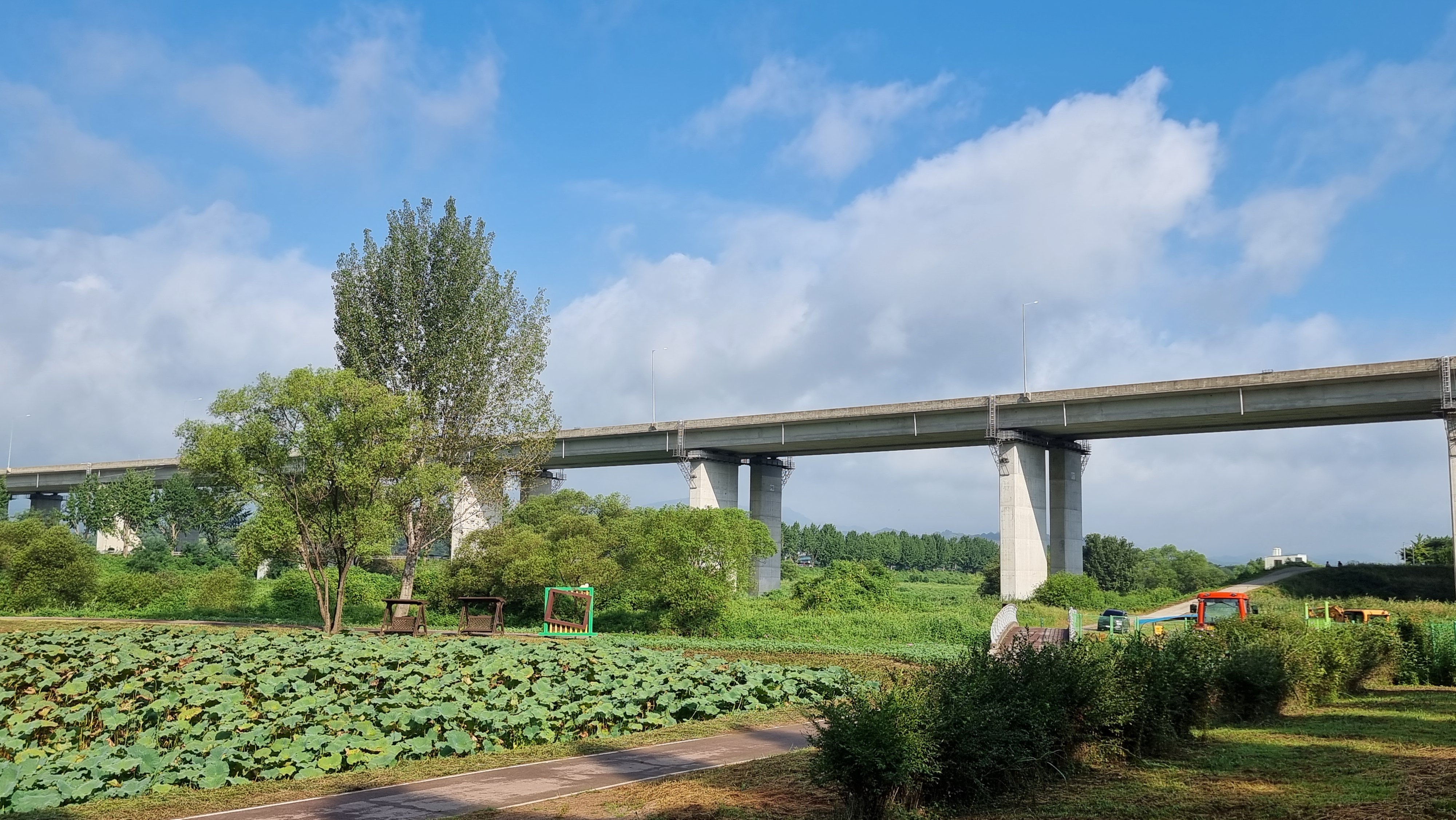 정안천 연못은 연꽃이 거의 지고 연 대공만 무성한데 이것도 점차 퇴색되어 간다. 흔들 그네는 오늘도 내가 앉아서 한참이나 흔들어댔다. 흔들 그네에 앉으면 고속도로가 잘 보이고 연못가를 걷는 사람들이 눈에 보인다. 간간이 부는 바람이 시원한 초 가을날이다.
