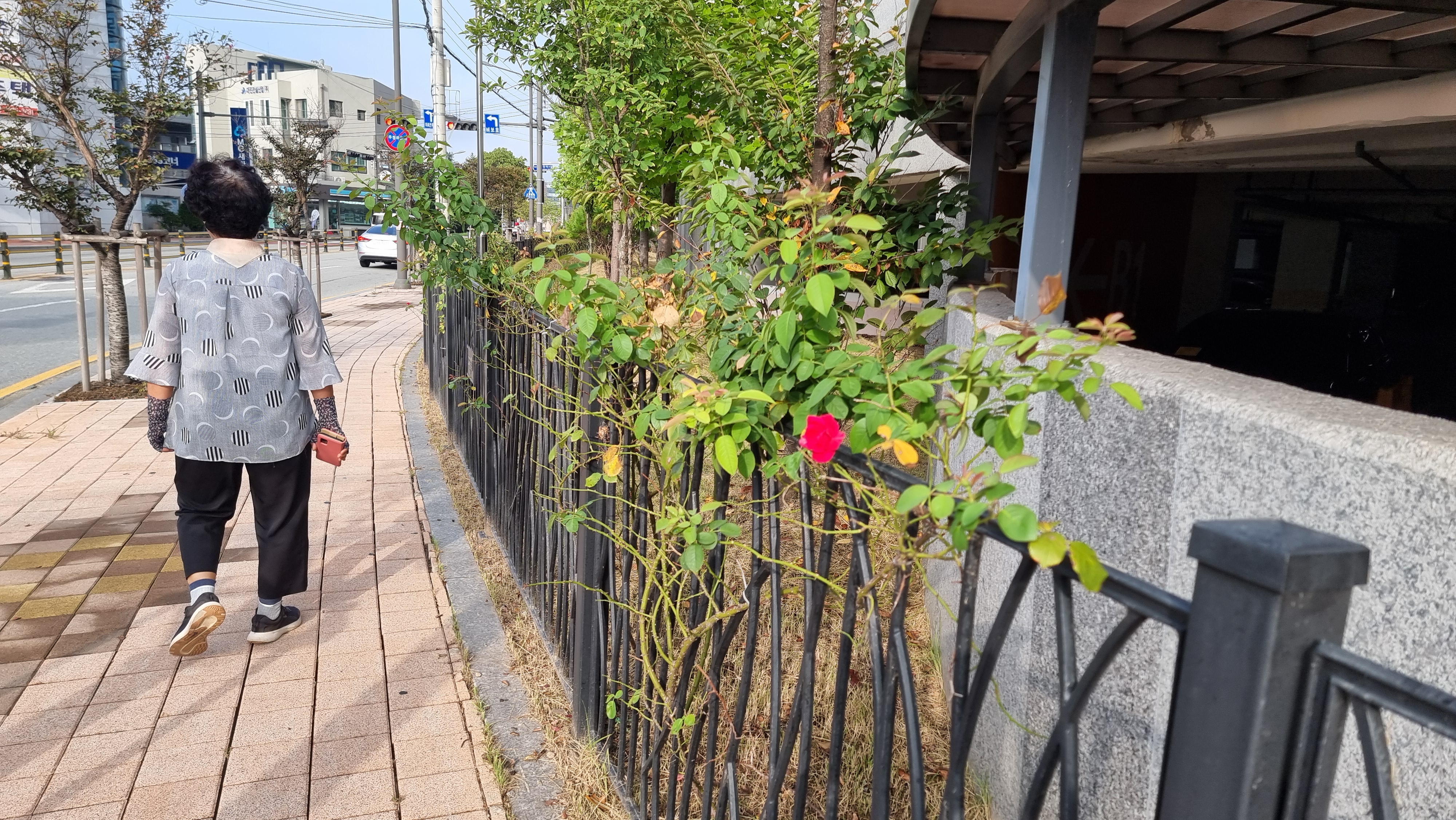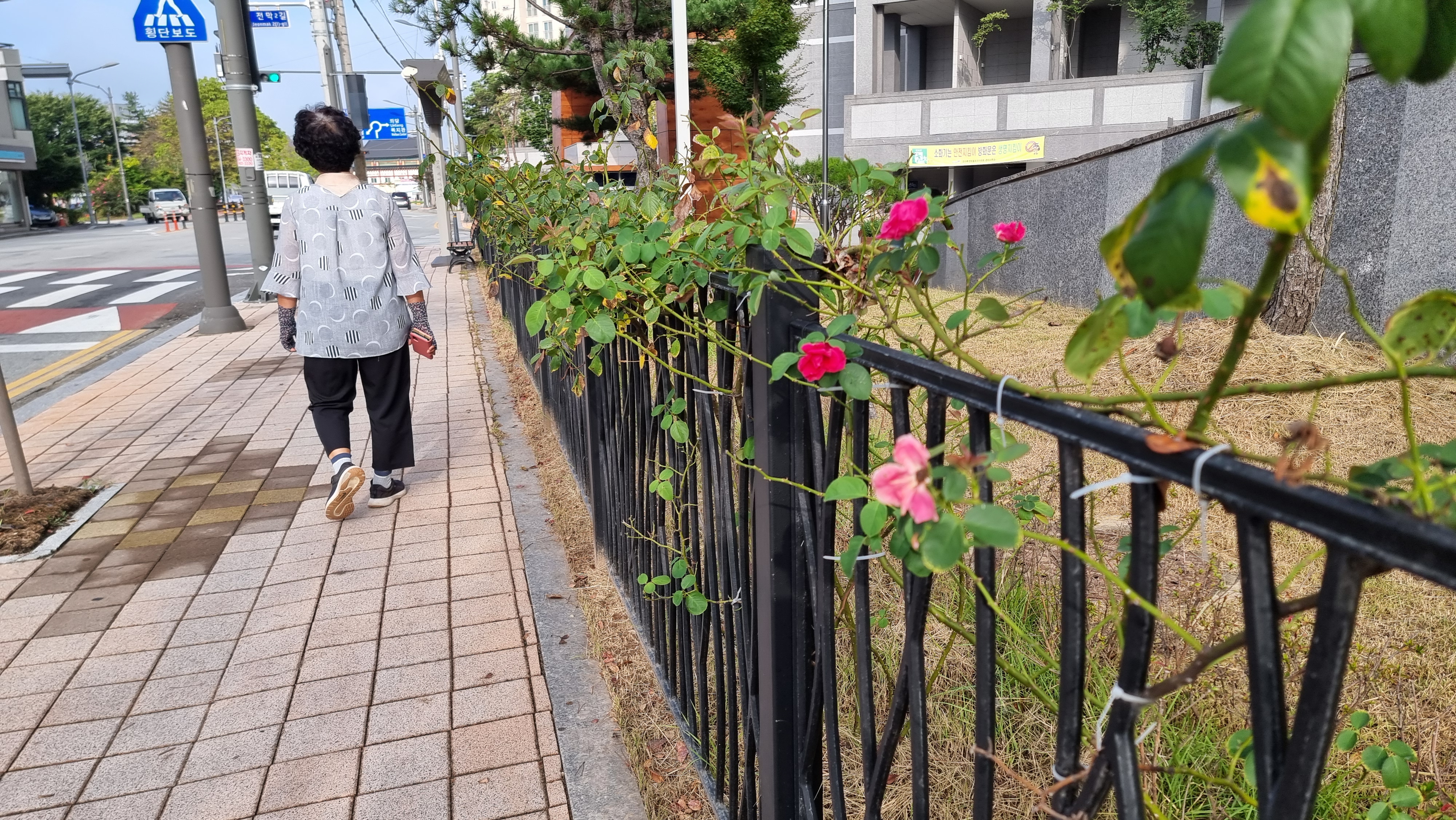 오늘 아침 늦 장미핀 모습을 보면서 걷는 길이다. 전에 비하여 아침 걷는 발걸음이 가볍다.