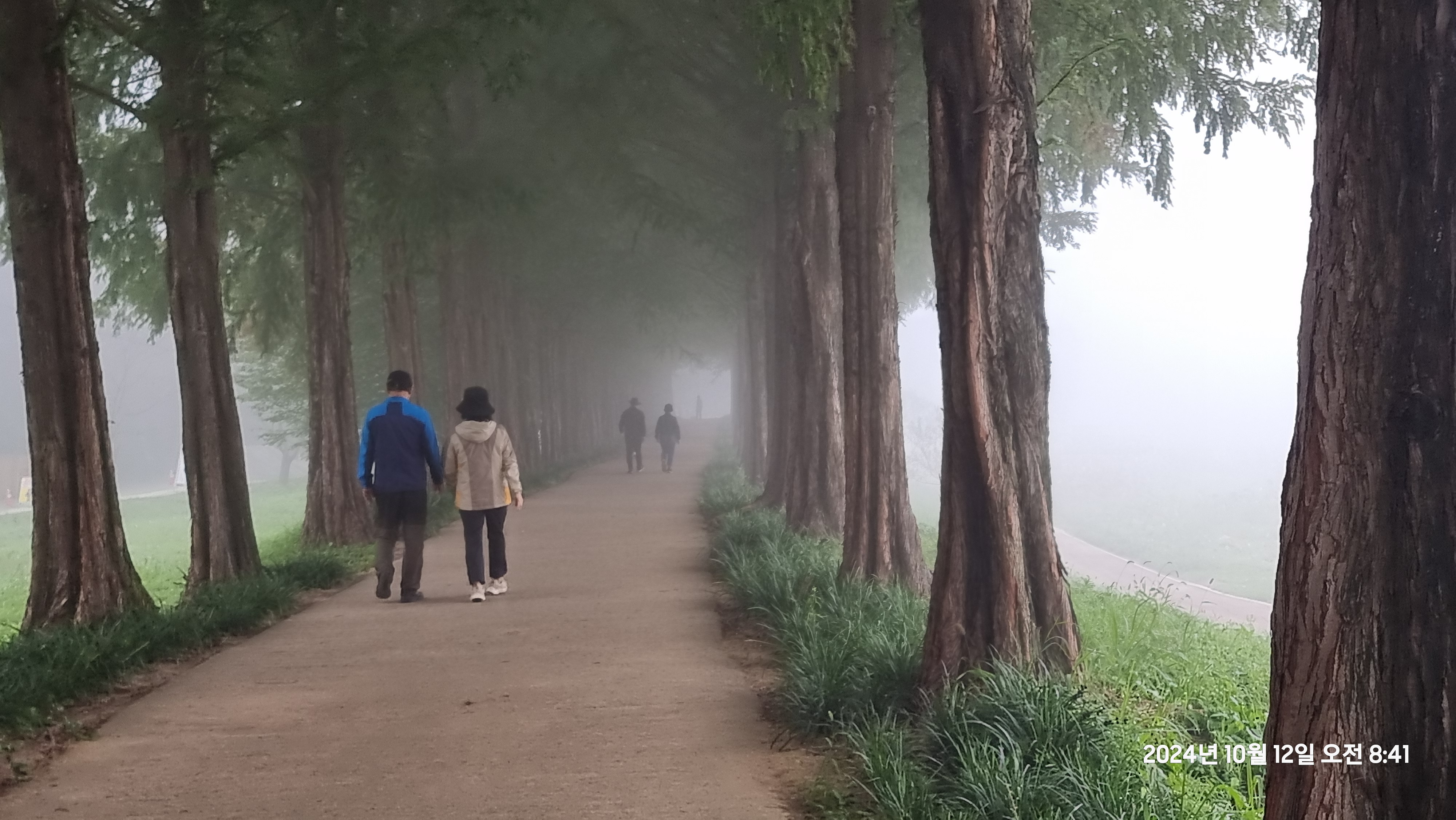 안갯 속 메타세쿼이아길을 걷는 사람들은 메타세쿼이아길의 운치를 아는 사람들이다 둘이서 여럿이서 메타세쿼이아가 있는 풍경을 즐기는 사람들을 이곳에서 볼 수 있다. 그중 나도 하나다..