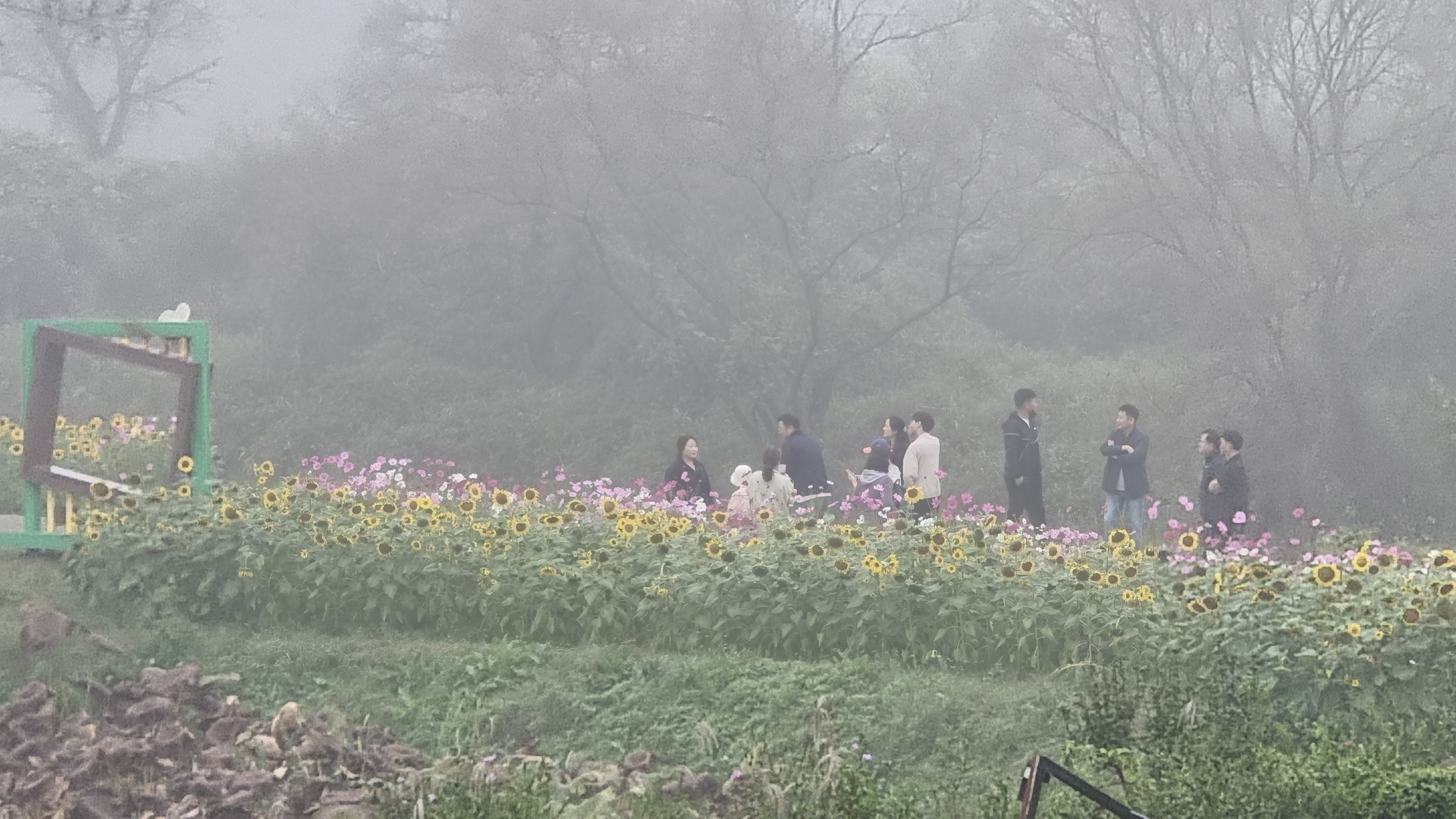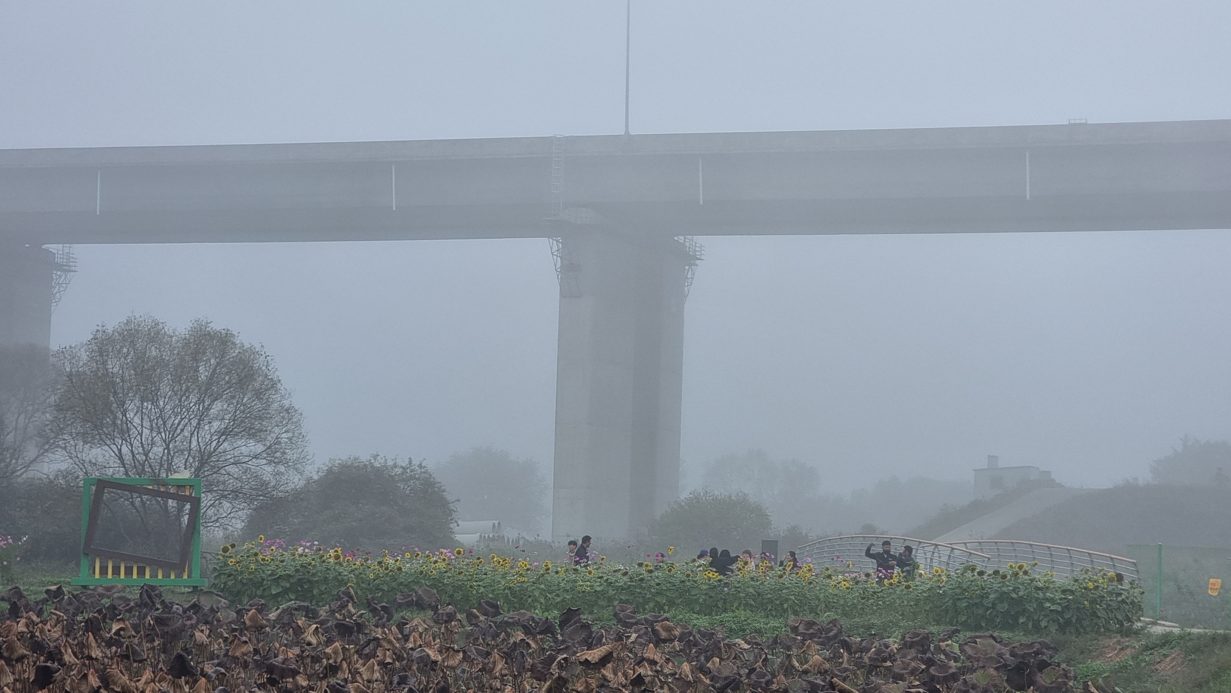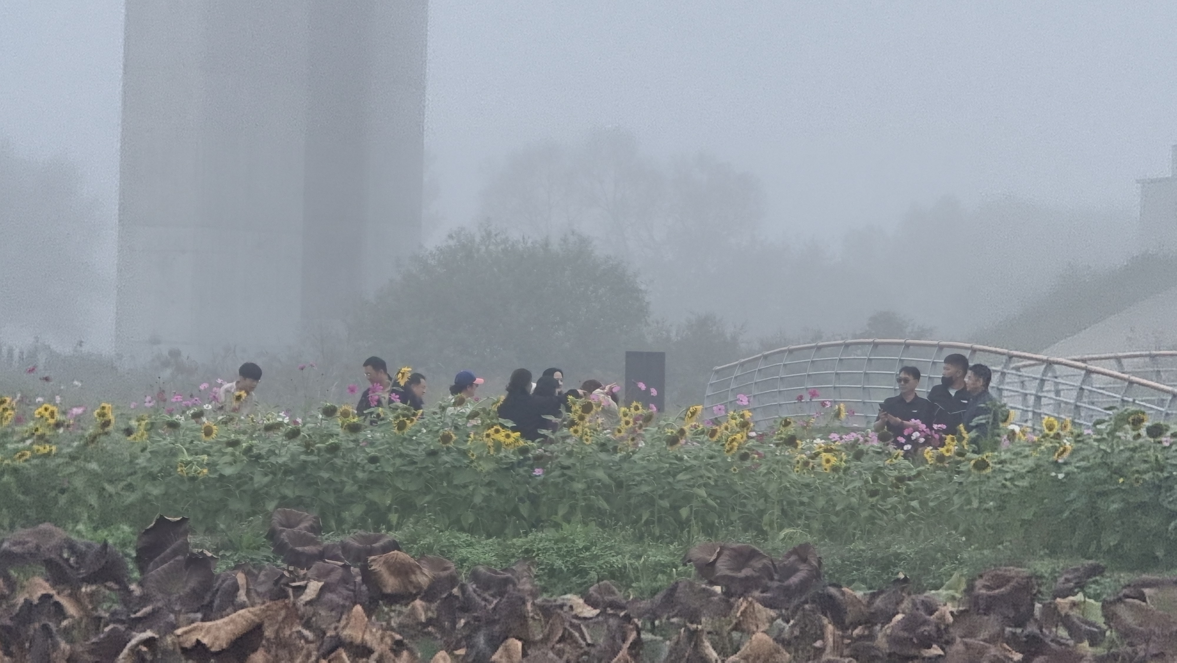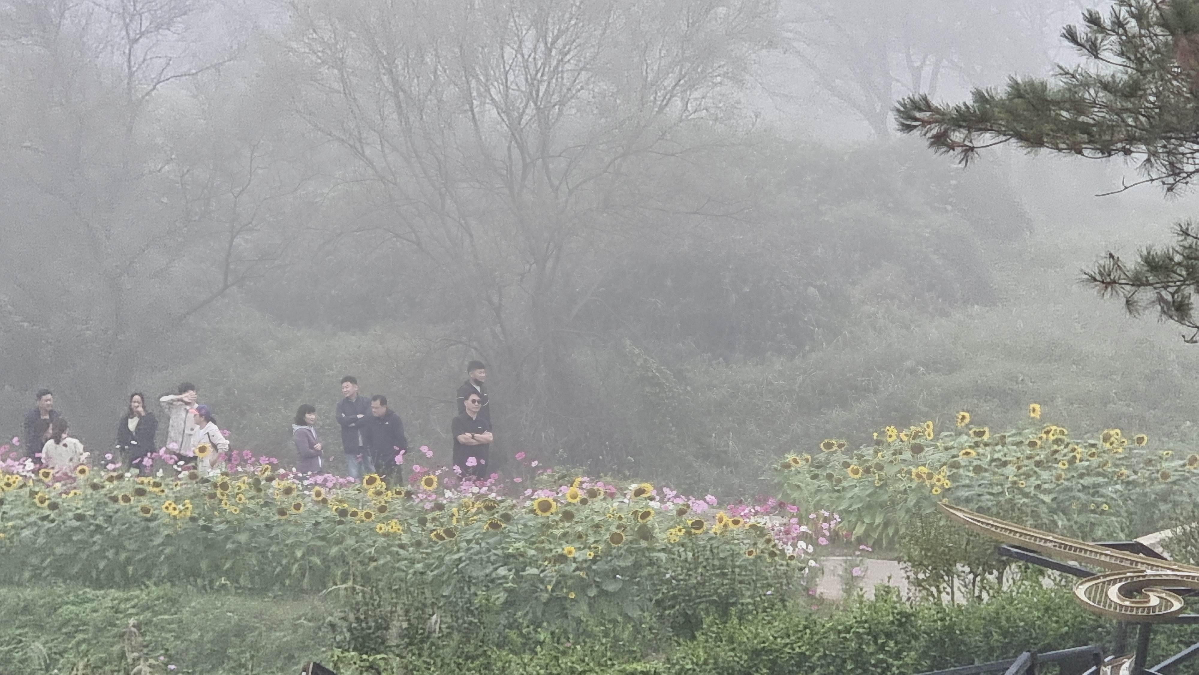 공주 정안천 연못이 끝나는 곳에 지금 해바라기와 코스모스가 한창 피었다. 이렇게 꽃 피울 수 있게 한 것은 누군가 씨 뿌려 가꿨기 때문이다. 걷기 좋은 산책길을 만들기 위해 노력한 여러분의 노고에 감사한다. 안갯속에 이 꽃들을 즐기는 여러 사람들 모습이 평화롭다. 꽃은 누구에게나 마음을 환하게 한다.
