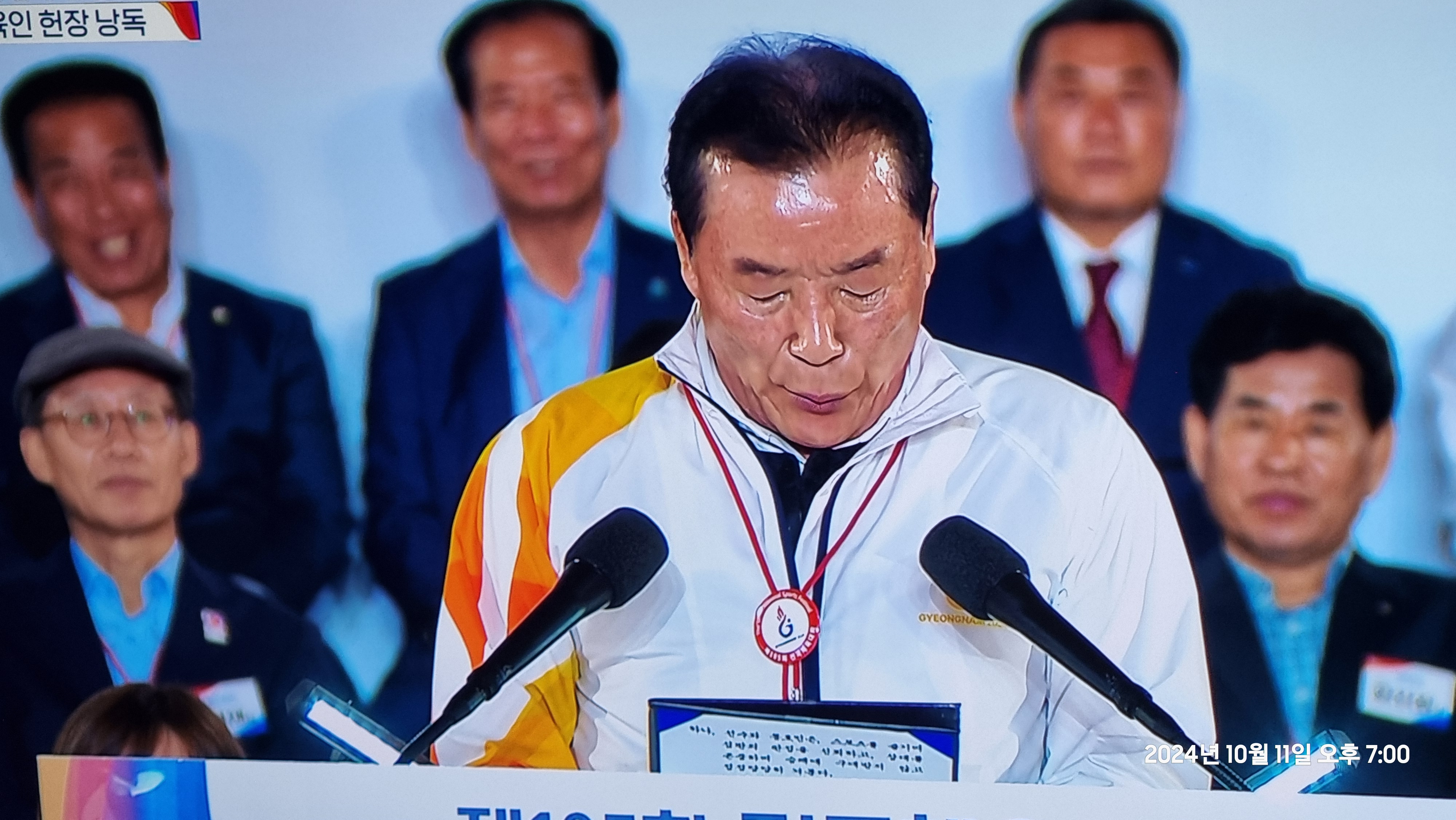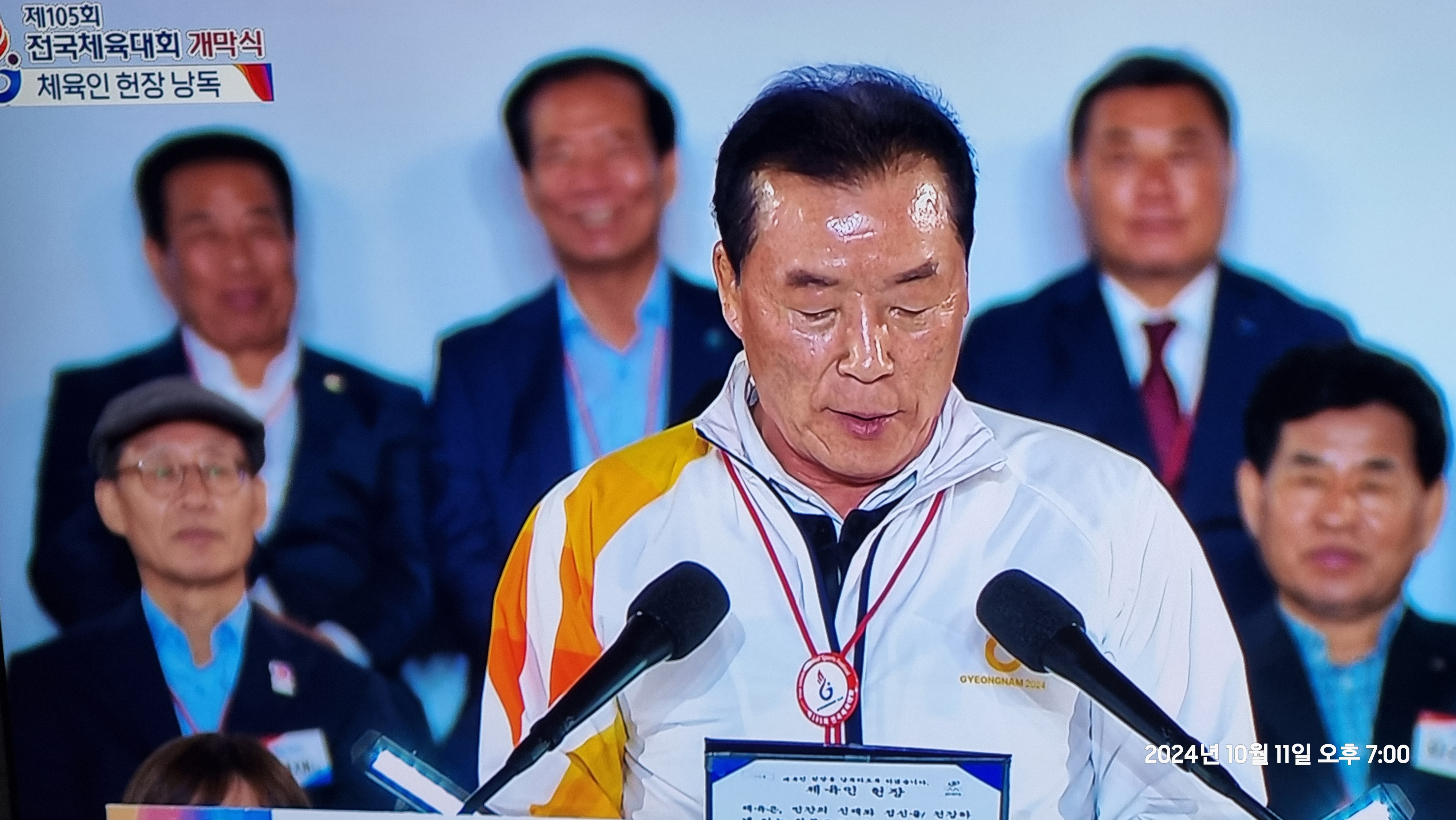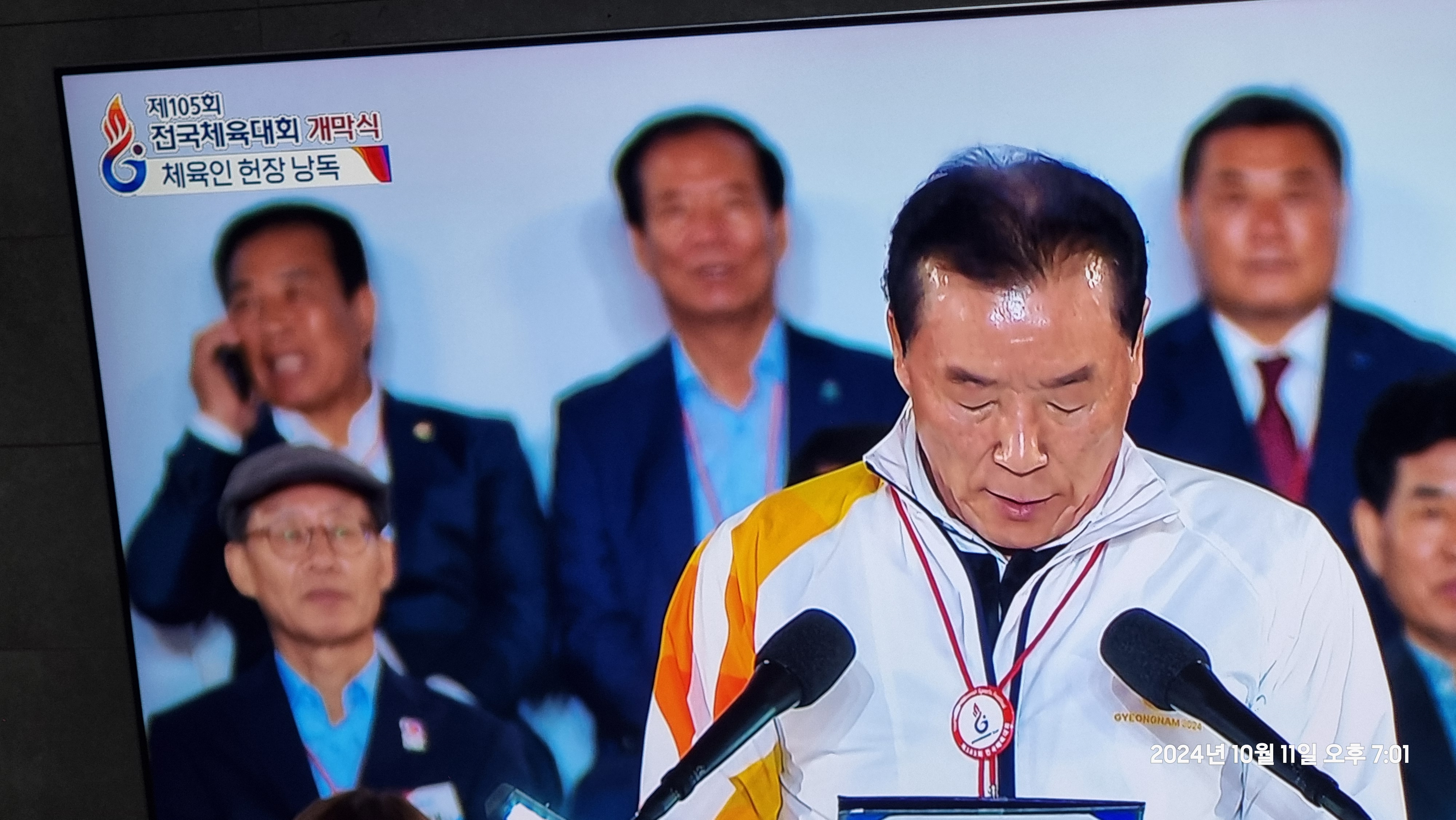 10월 11일 밤, 제105회 전국체육대회 개회식이 경남 김해에서 열리는 실황중계방송을 보다가 체육인 헌장을 낭독하는 분의 뒤편에 흐릿하게 비치는 어떤 두 사람의 행동이 눈살을 찌푸리게 했다. 뒤에서 뭔가 대화를 하고 히죽거리며 웃고 전화 통화 하는 모습이 화면으로 보이는 그 모습은 안 좋아 보였다. 열심히 낭독하는 분의 중후한 모습에 비추어 뒤에 앉은 사람의 행동은 너무 경솔하다고 느낄 정도였다. 이런 장면은 방송에 나와서는 안 될 것이다.
