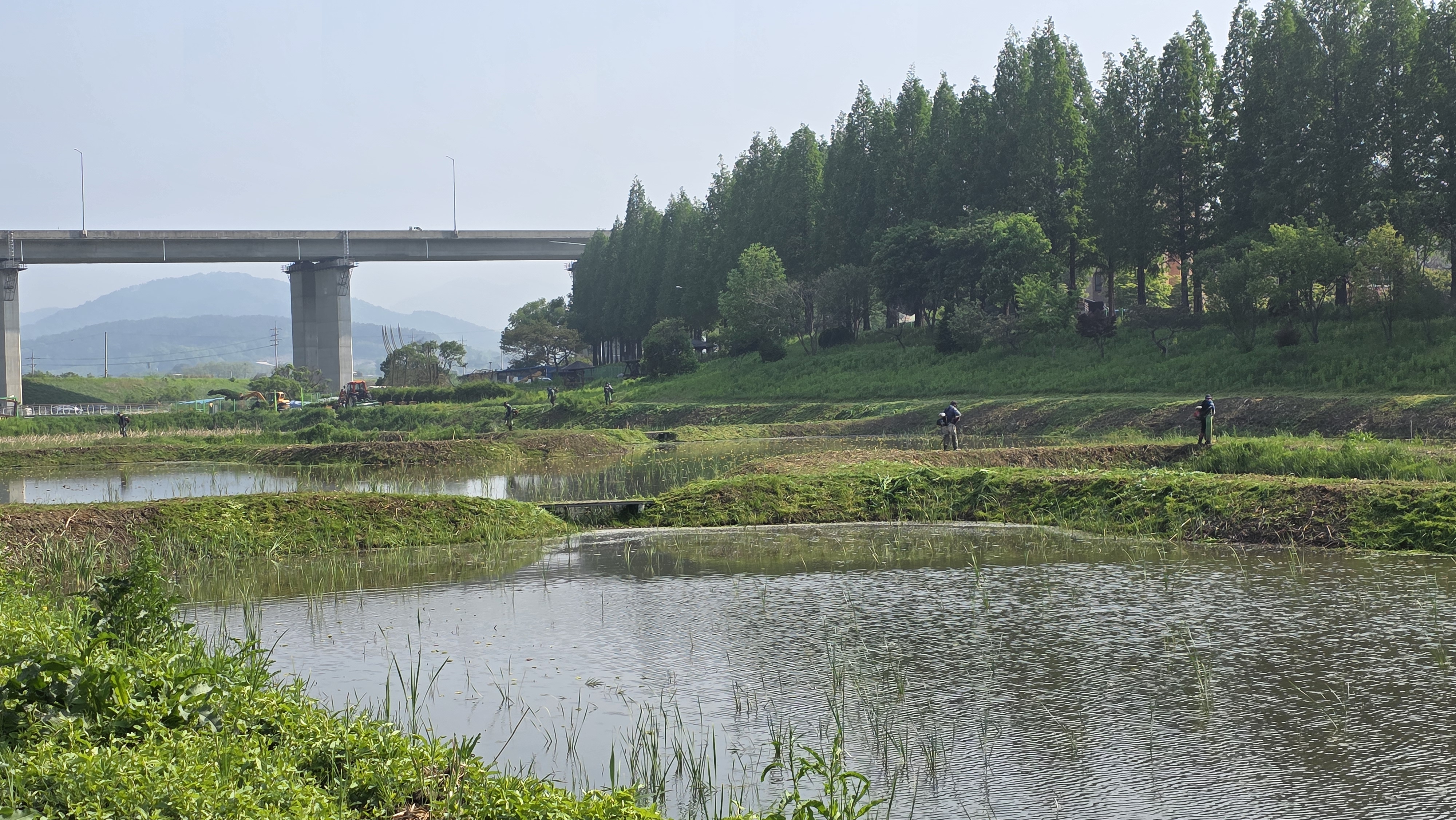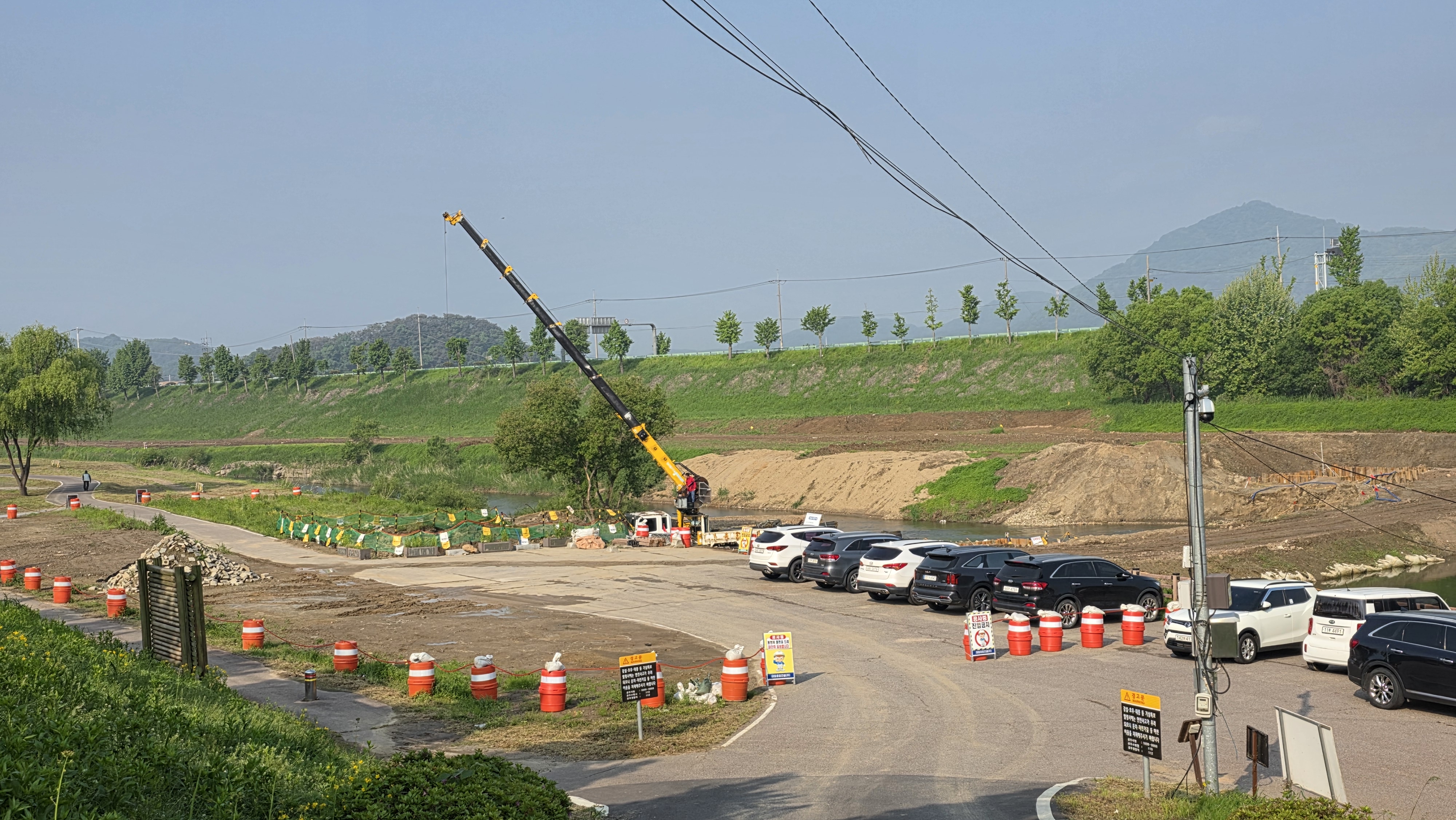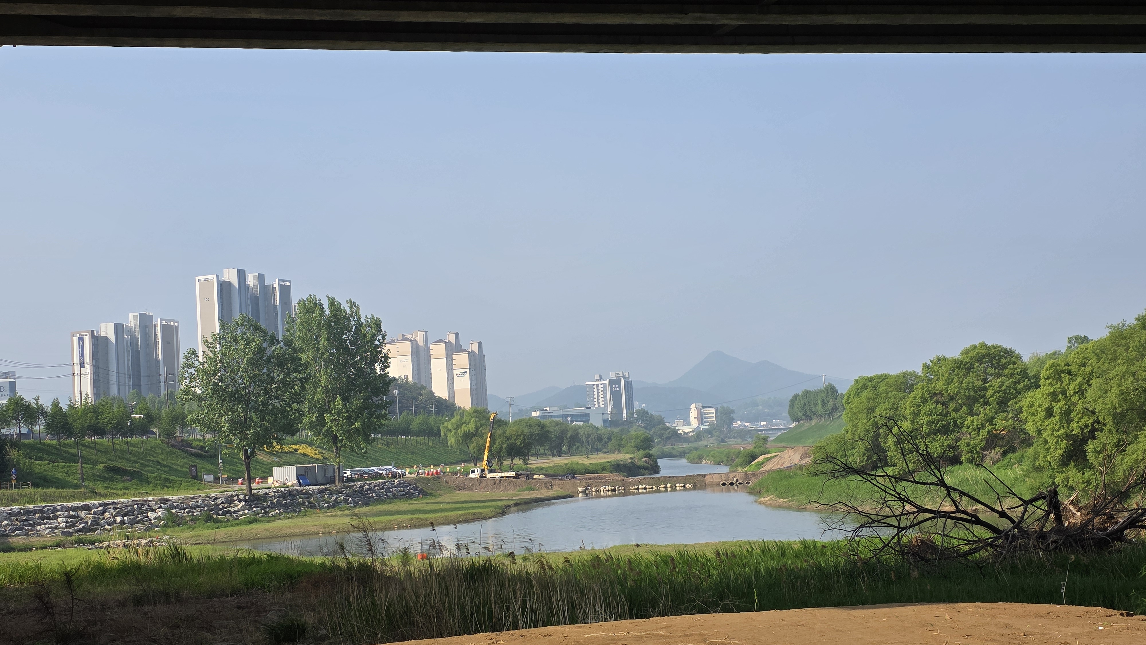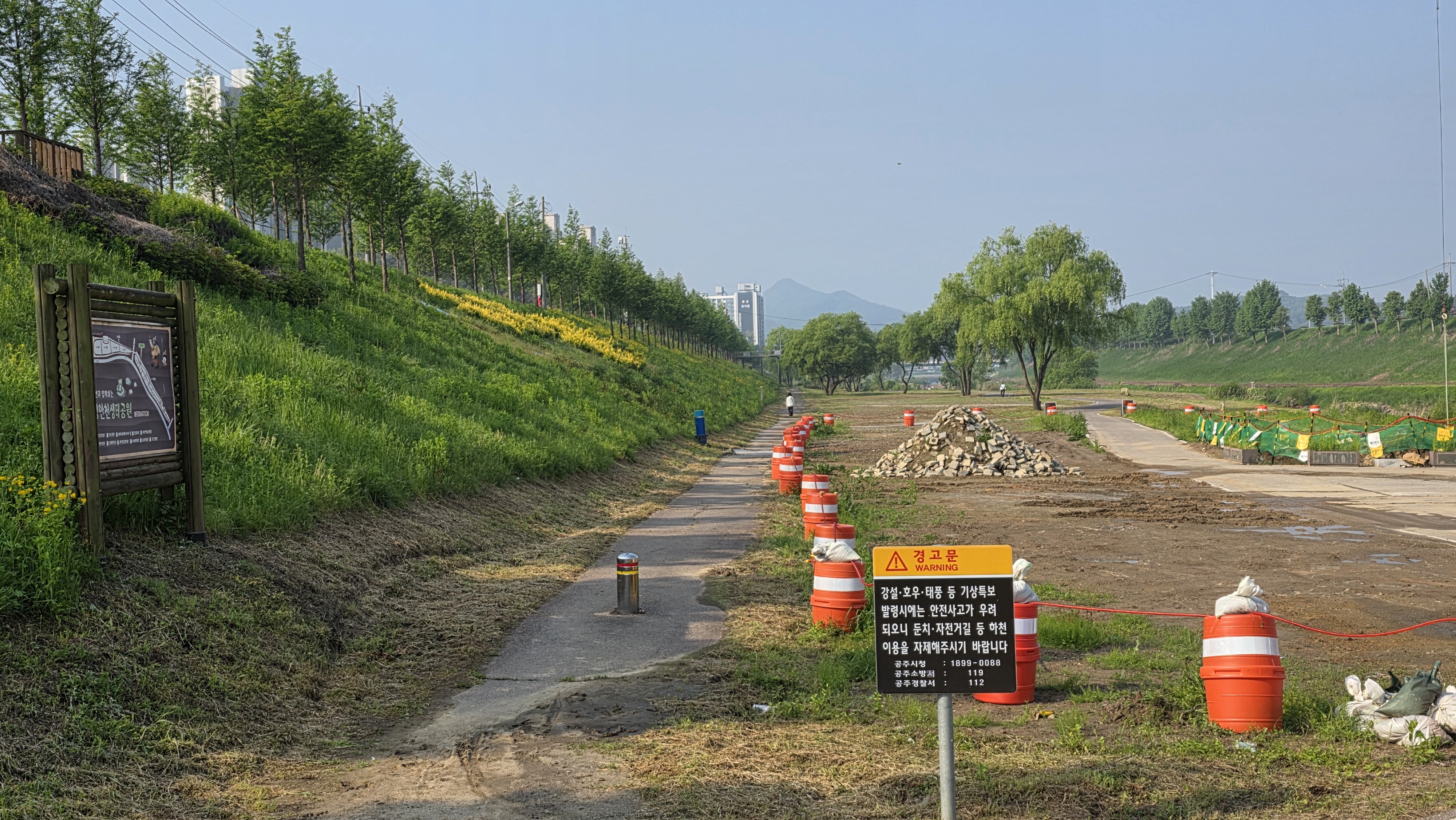 3. 더 좋은 정안천 생태 하천을 위한 정안천 냇물 주변에 편의 시설 공사가 진행 중이다.