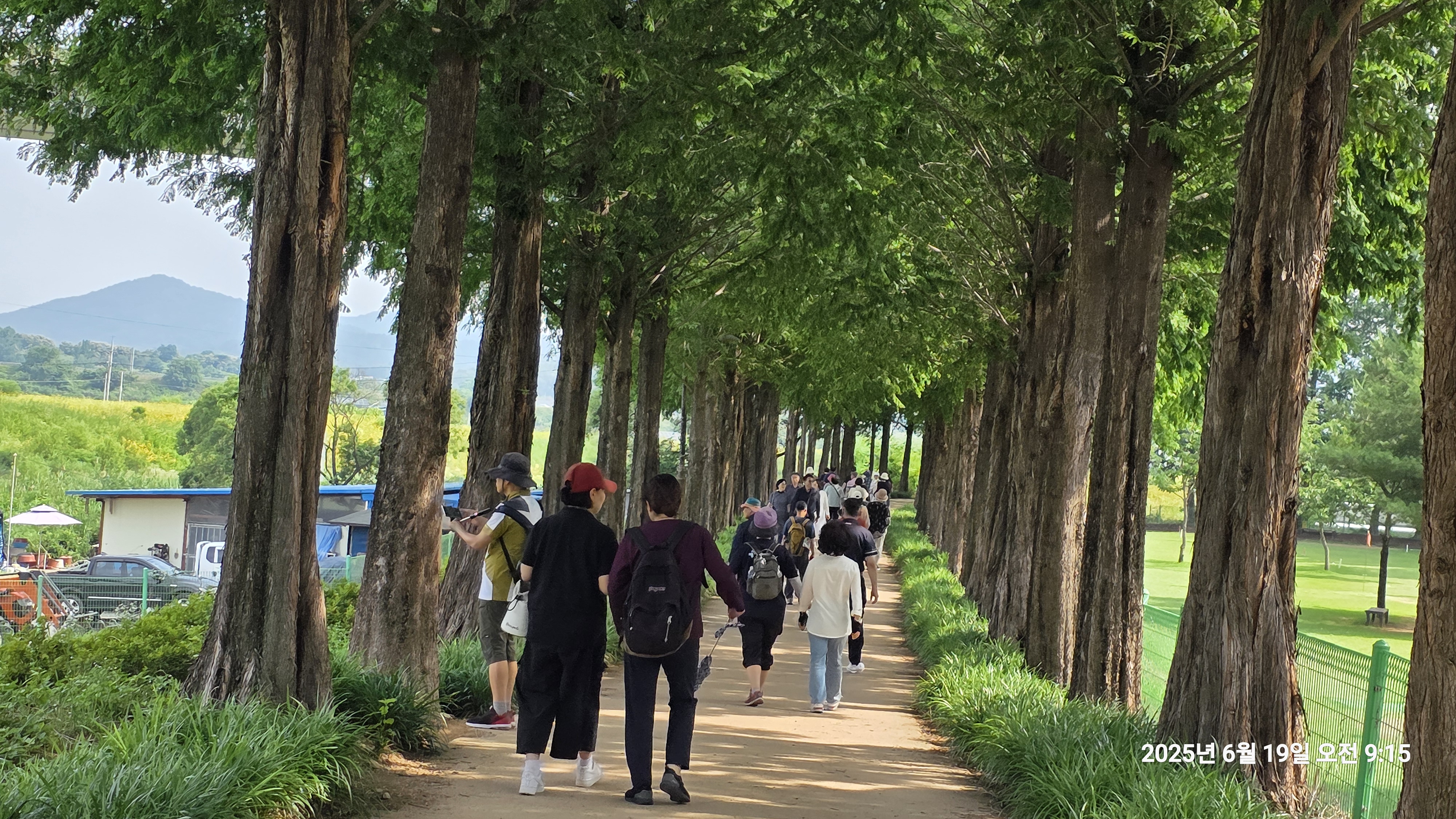 공주시종합사회복지관 부근 메타세쿼이아가 파란 잎을 자랑하고 있는데 그 길을 걷는 사람이 많아졌습니다.