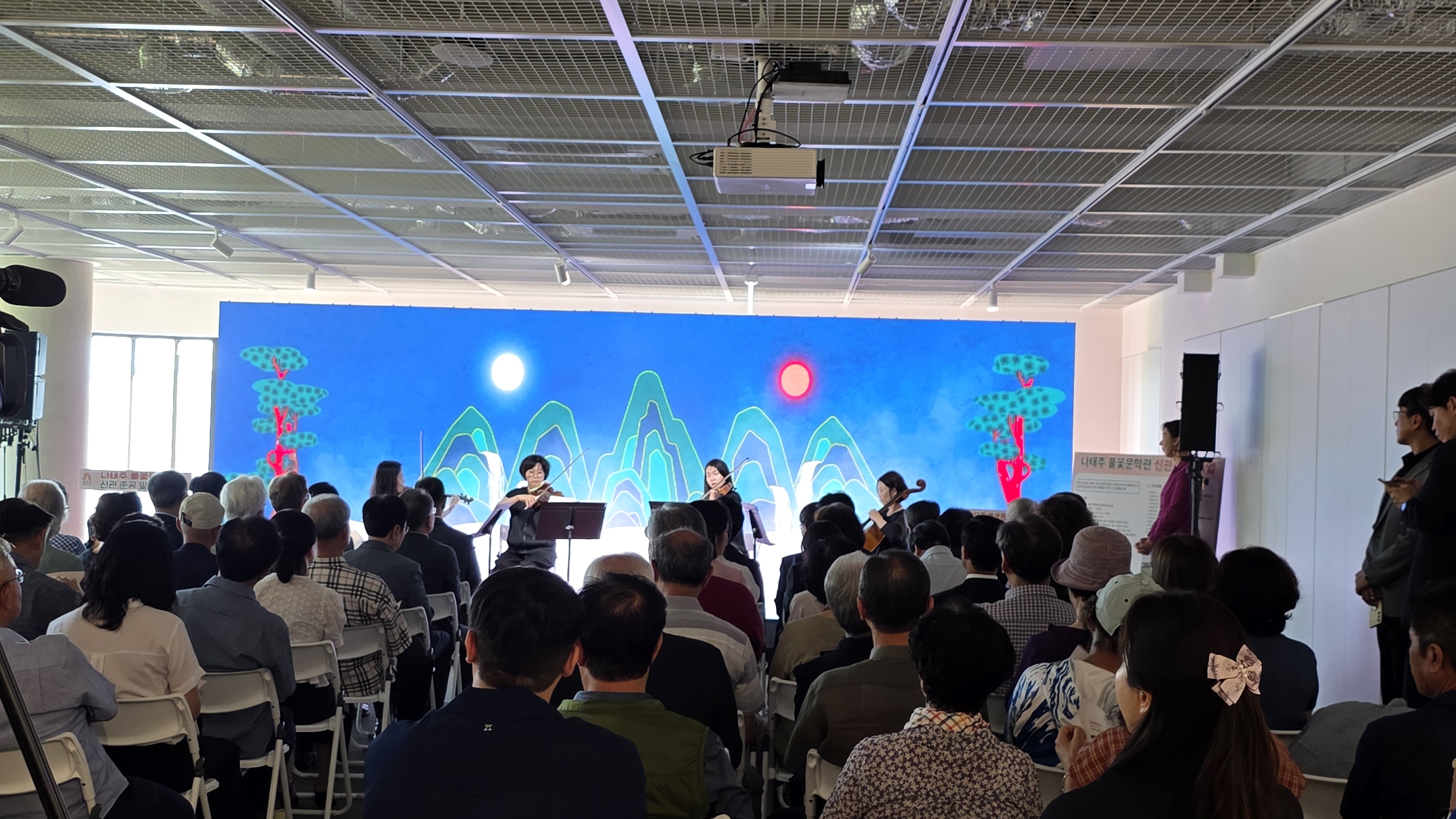 개관 식전 행사로 현악 4중주단의 연주가 있었다, 앉을 좌석이 모라랄 정도의 사람들 앞에서 잔잔하게 연주한 음악은 여러 사람에게 좋은 반응을 주었다.