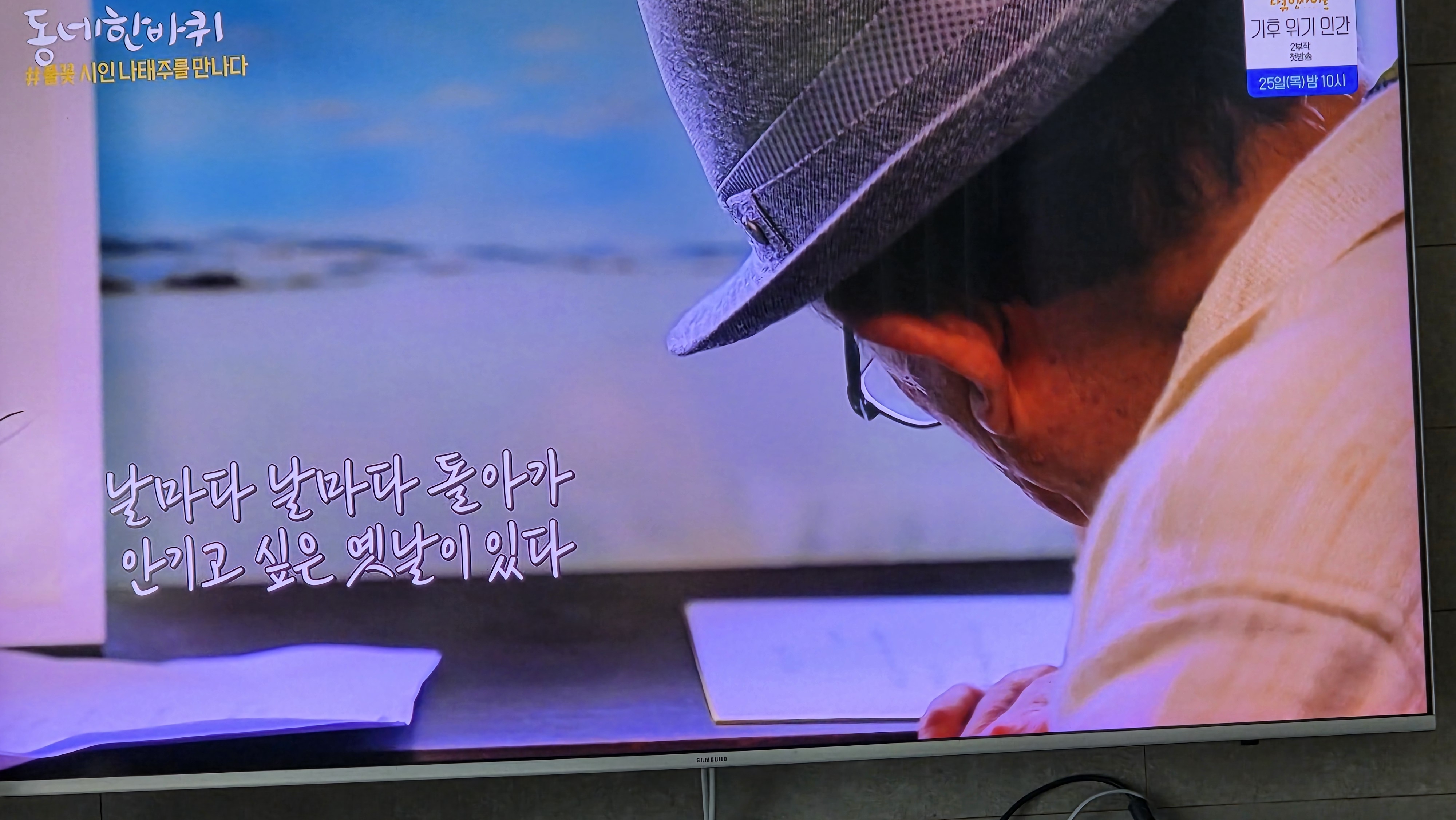 제337화 자꾸만 걷고 싶다-충청남도 공주시편이 2025년 9월 20일 19시 10분에 방송되는 사실을 지인으로부터 정보를 듣고 마침 나태주 시인이 나오는 부분부터 볼 수 있었다.