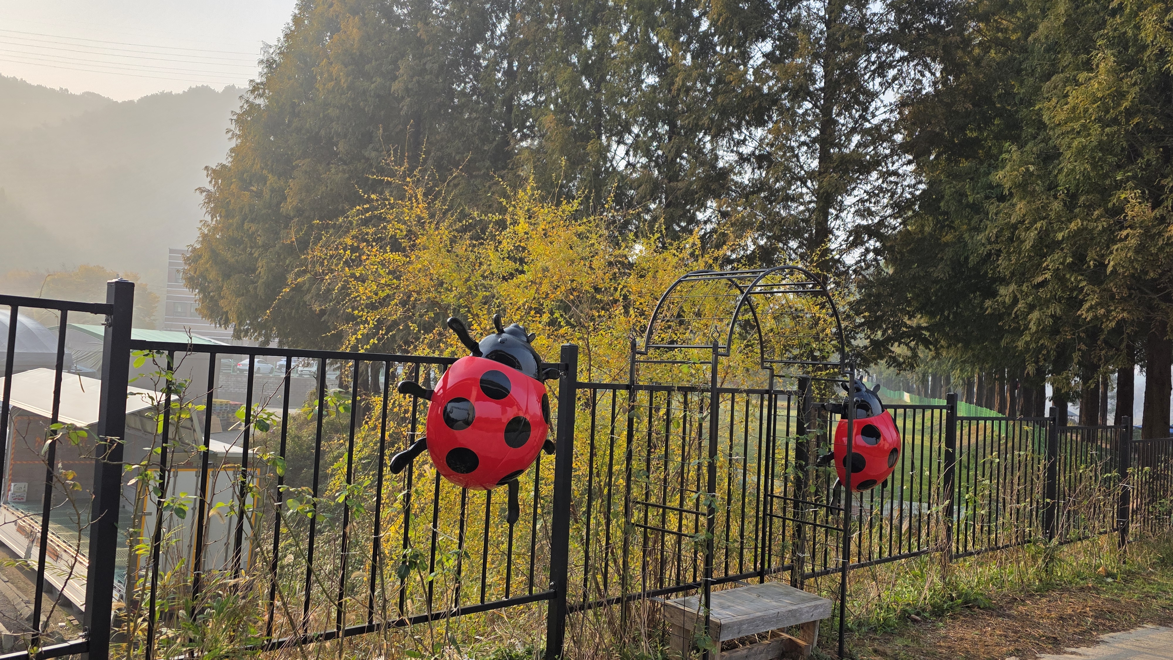 산책길가의 무당벌레 조형물이 그럴듯하다.