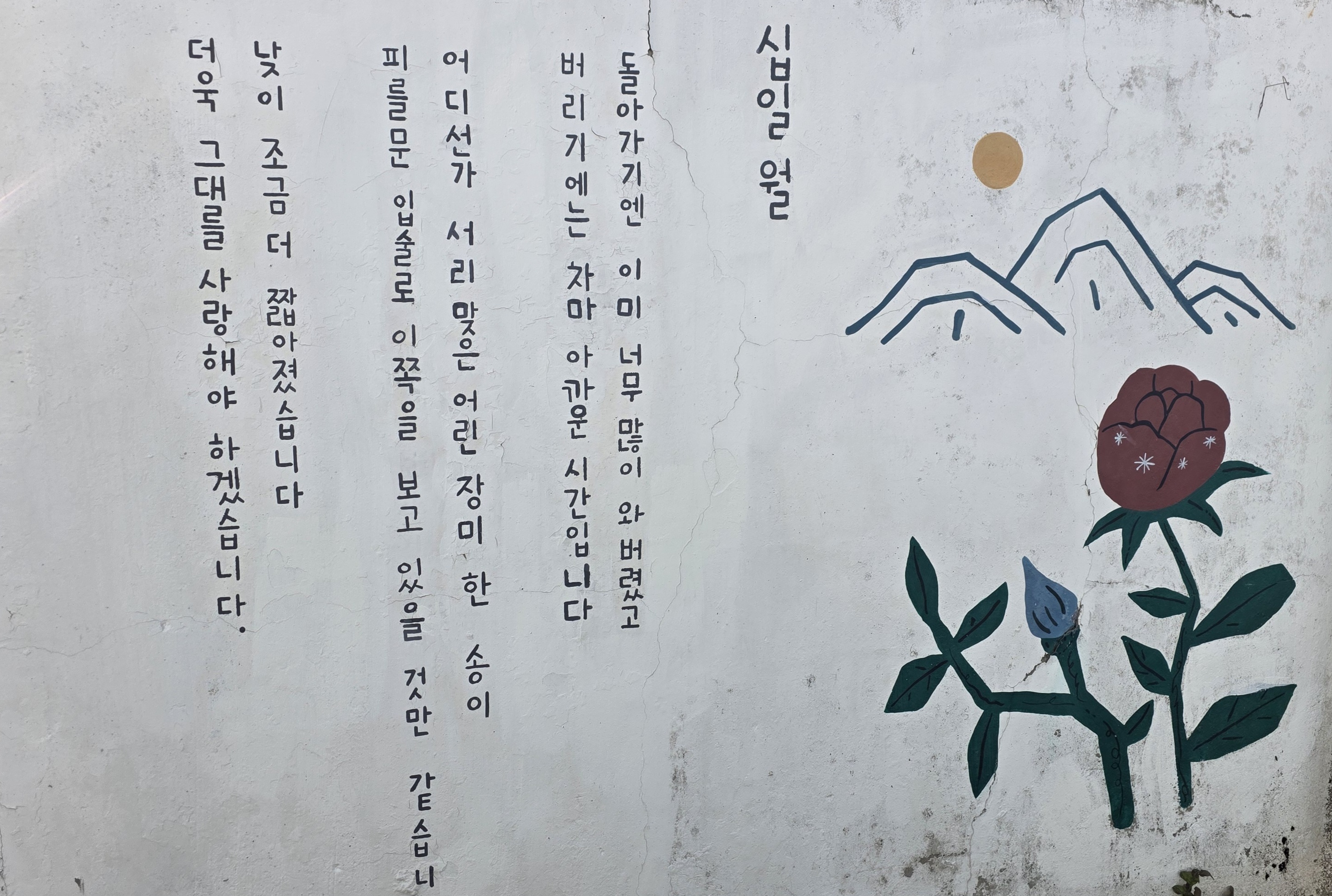 반죽동 공주사대부고 앞 골목 집집마다 담벼락에 나태주 시가 붙어 있다.
