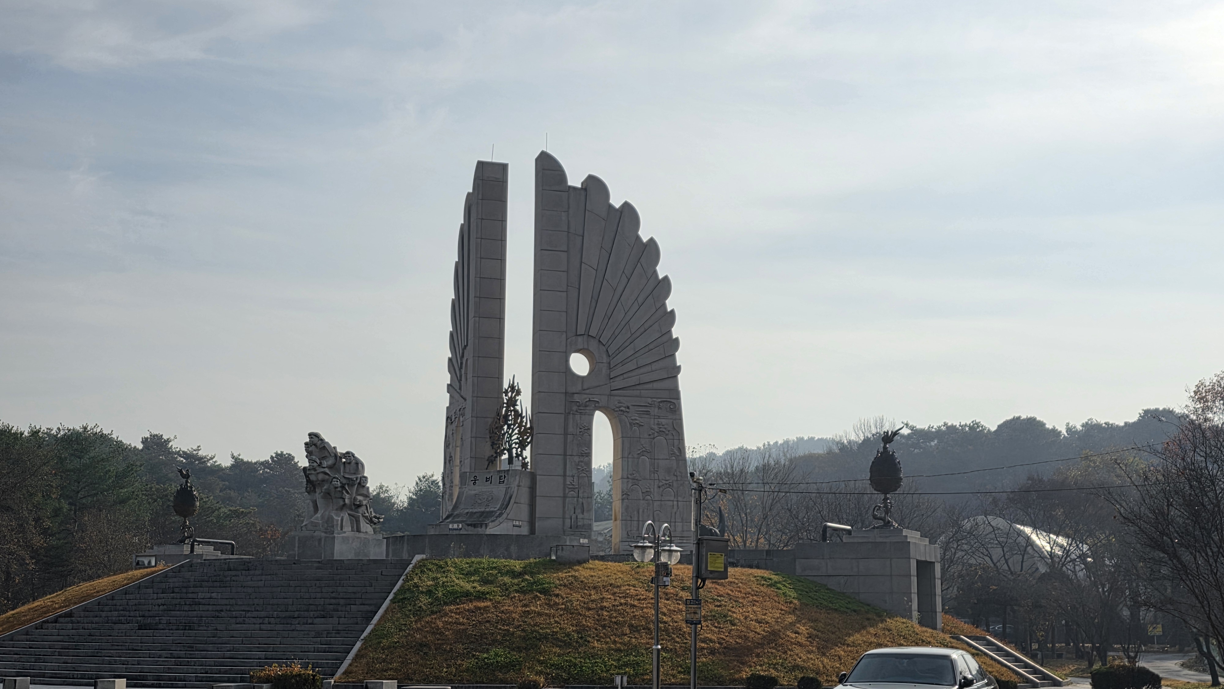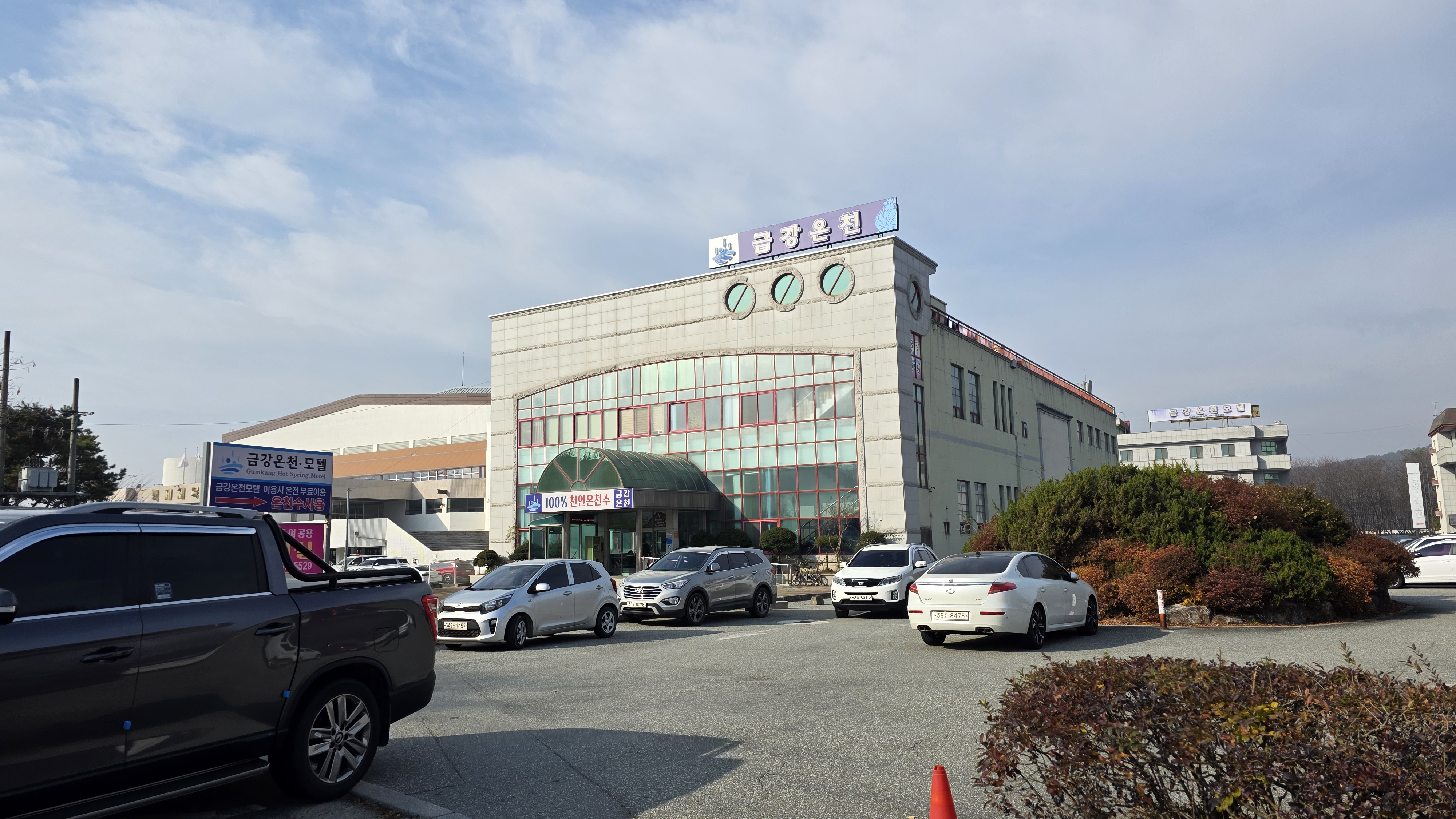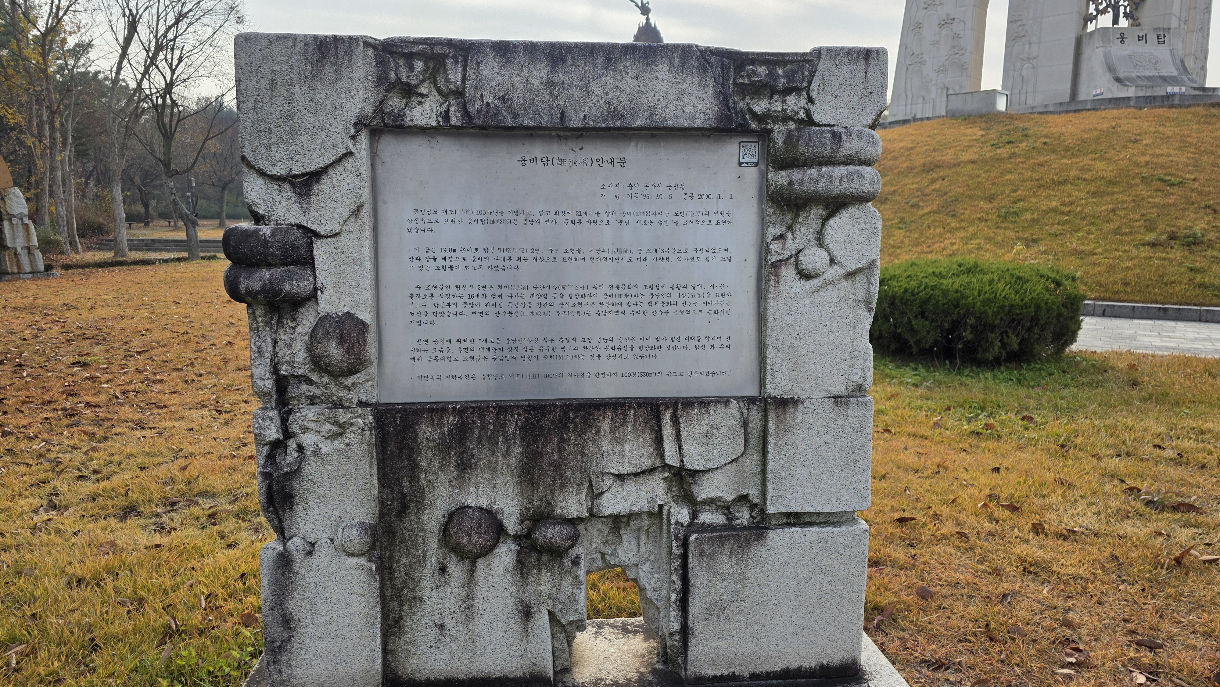 데크길 광장(09:50)에서 웅비탑(10:01), 거쳐서 한옥마을 건너 금강온천에 도착하기(10:45))까지 55분