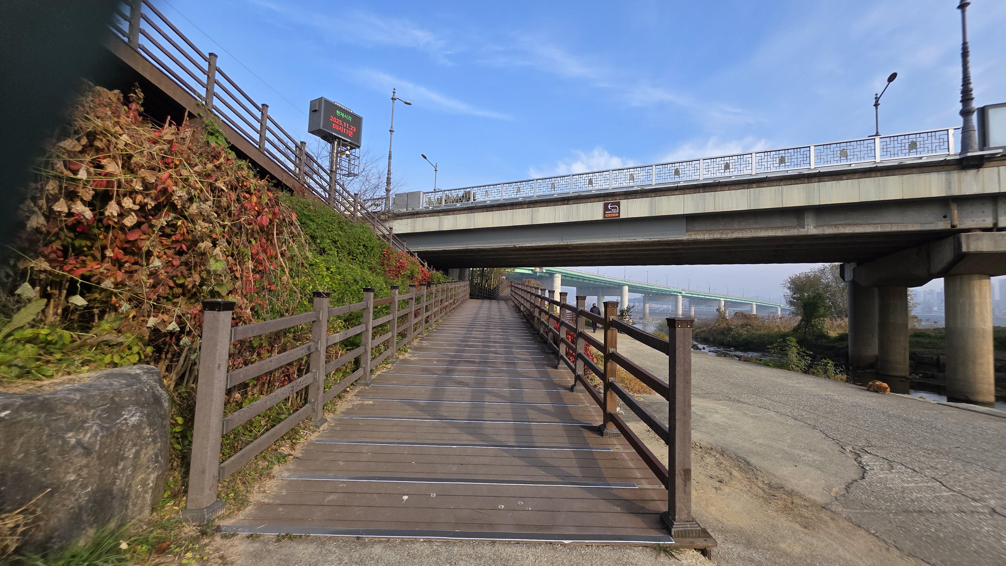 강가에 만들어진 수변도로는 주변 풍광을 즐길 수 있는 멋진 걷기 코스였다. 나 혼자만 걷는 줄 알았는데 오늘 걸으면서 한 열 명쯤은 만난 것 같다. 걷기 좋은 수변 도로를 다시 걷고 싶다.