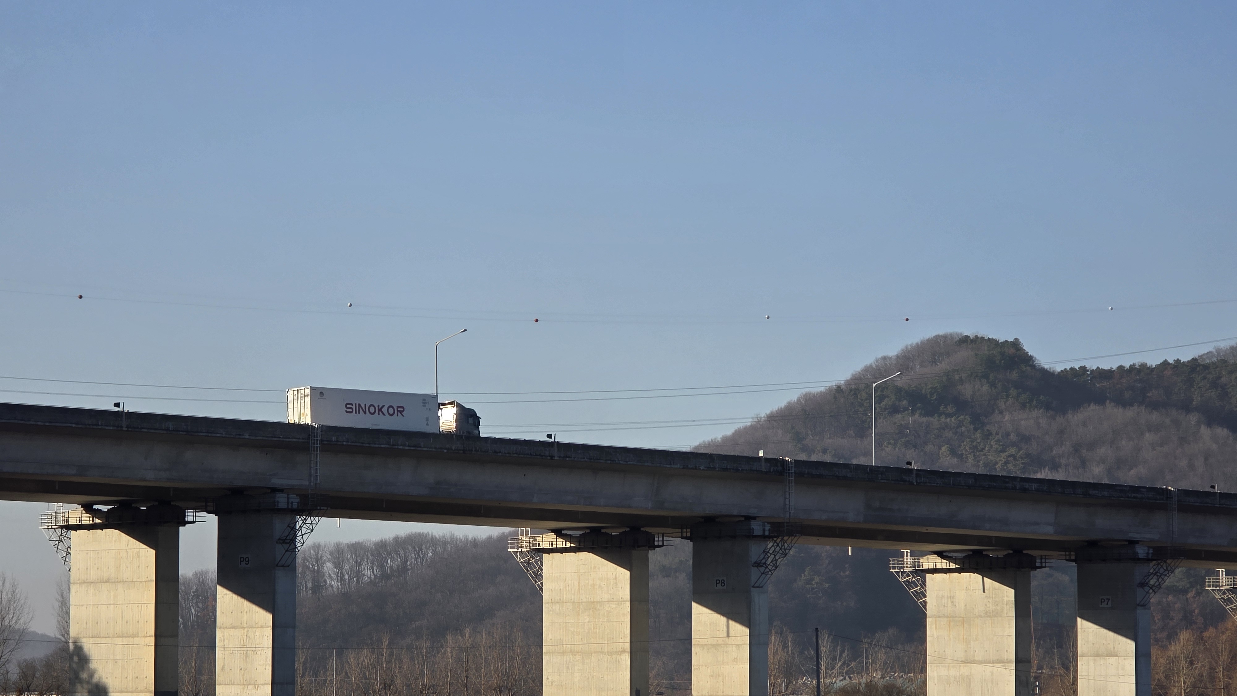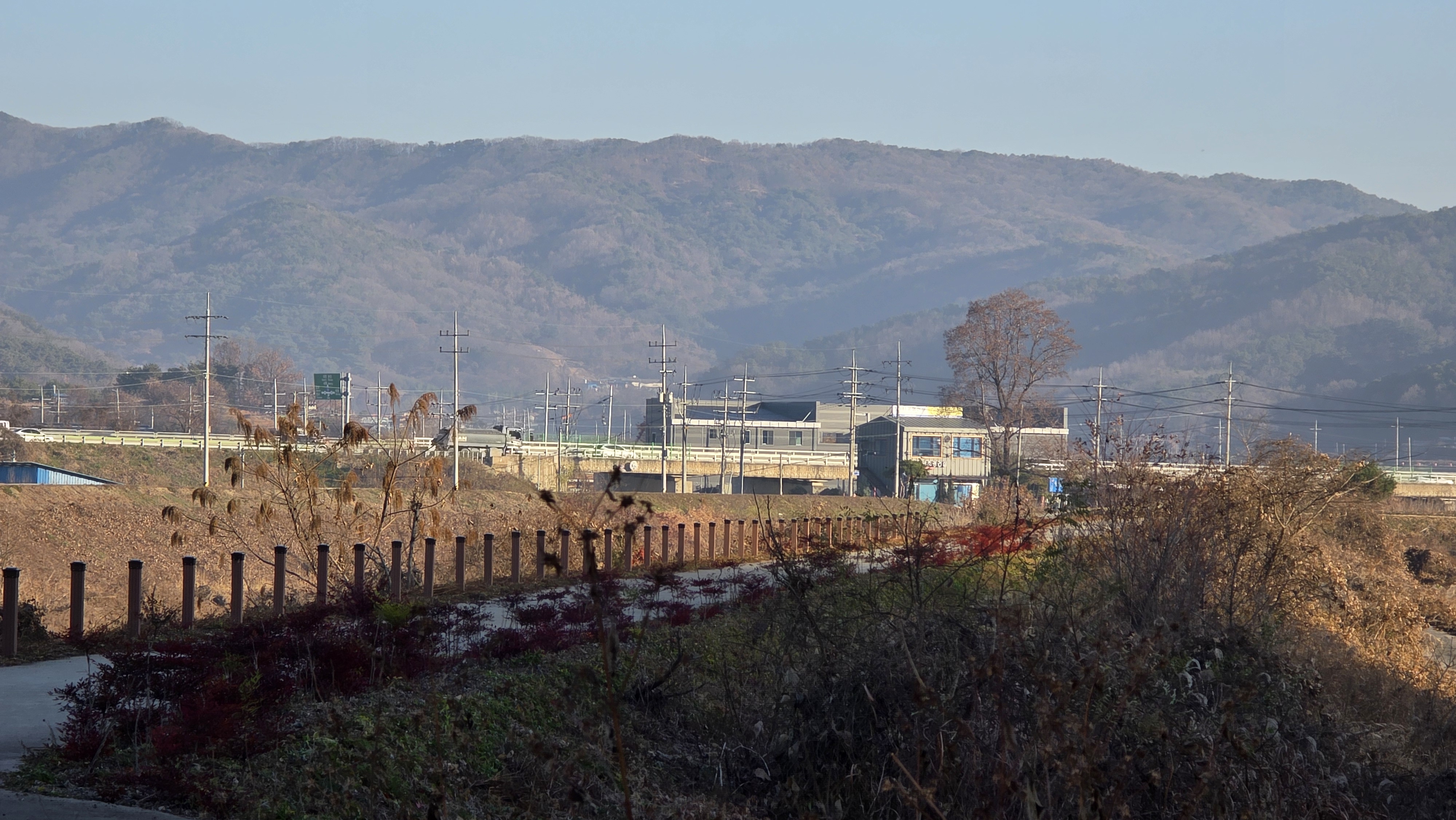 되짚어 돌아오는 둑길에서 당진 대전 간 고속도로 위를 달리는 화물트럭을 본다. 물류의 원활한 유통은 국가 산업발전에 큰 도움이 될 것이다.