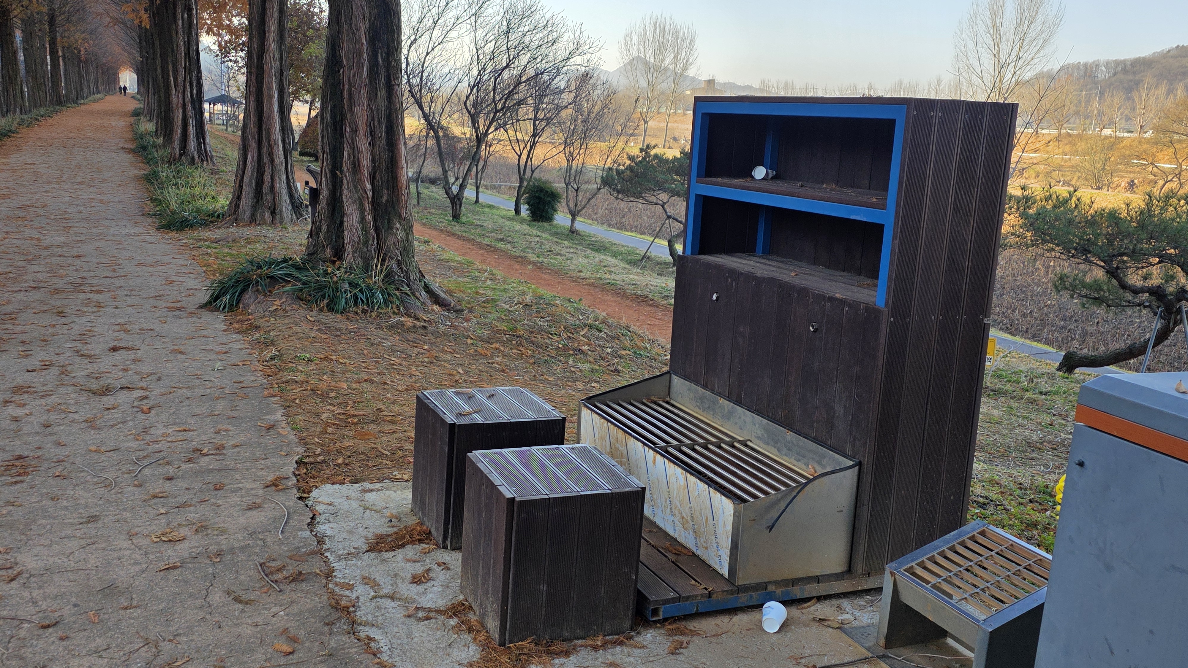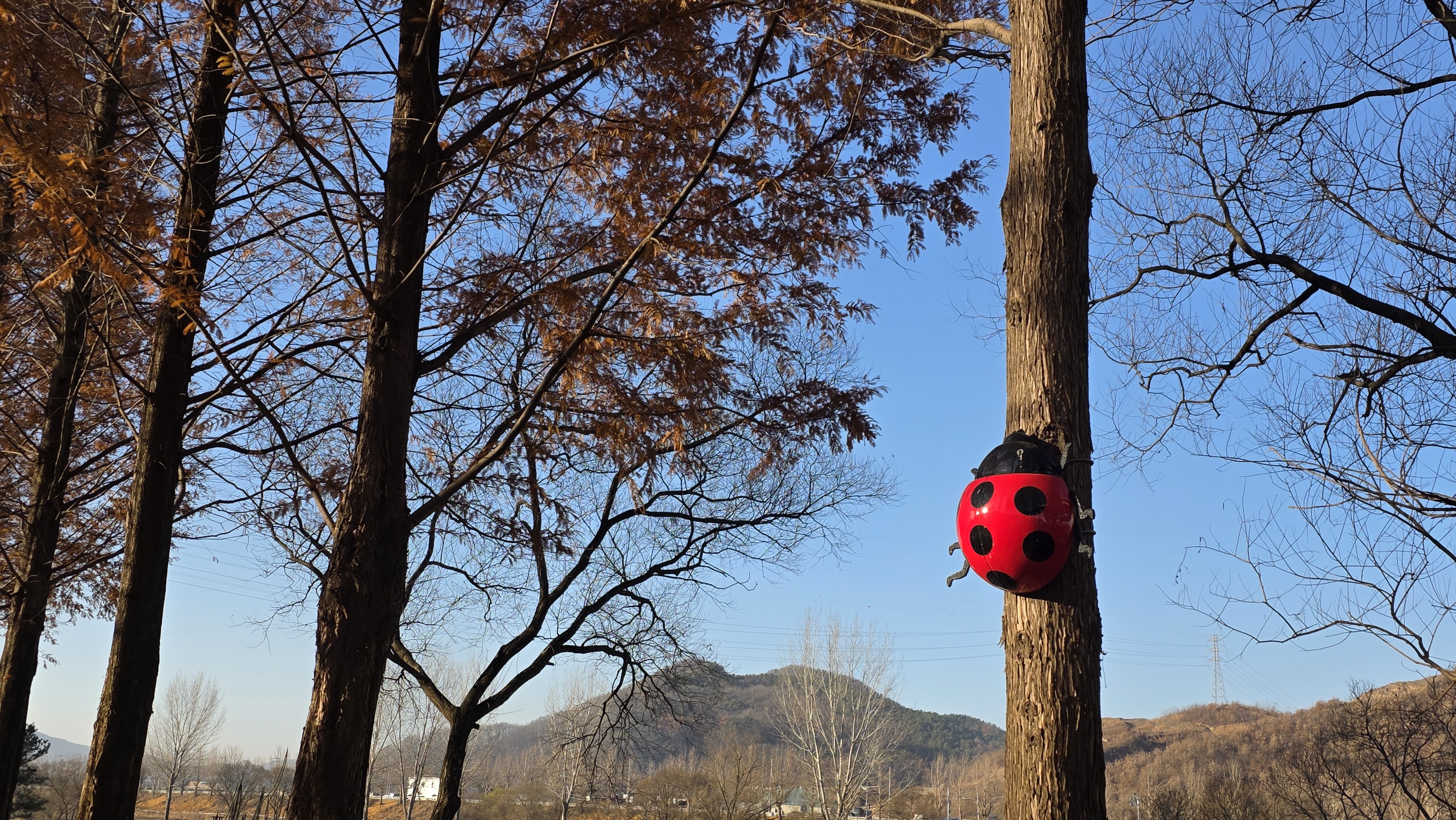 거기서 조형물 무당벌레도 보고 주변에서 짖는 강아지 소리도 듣는다.