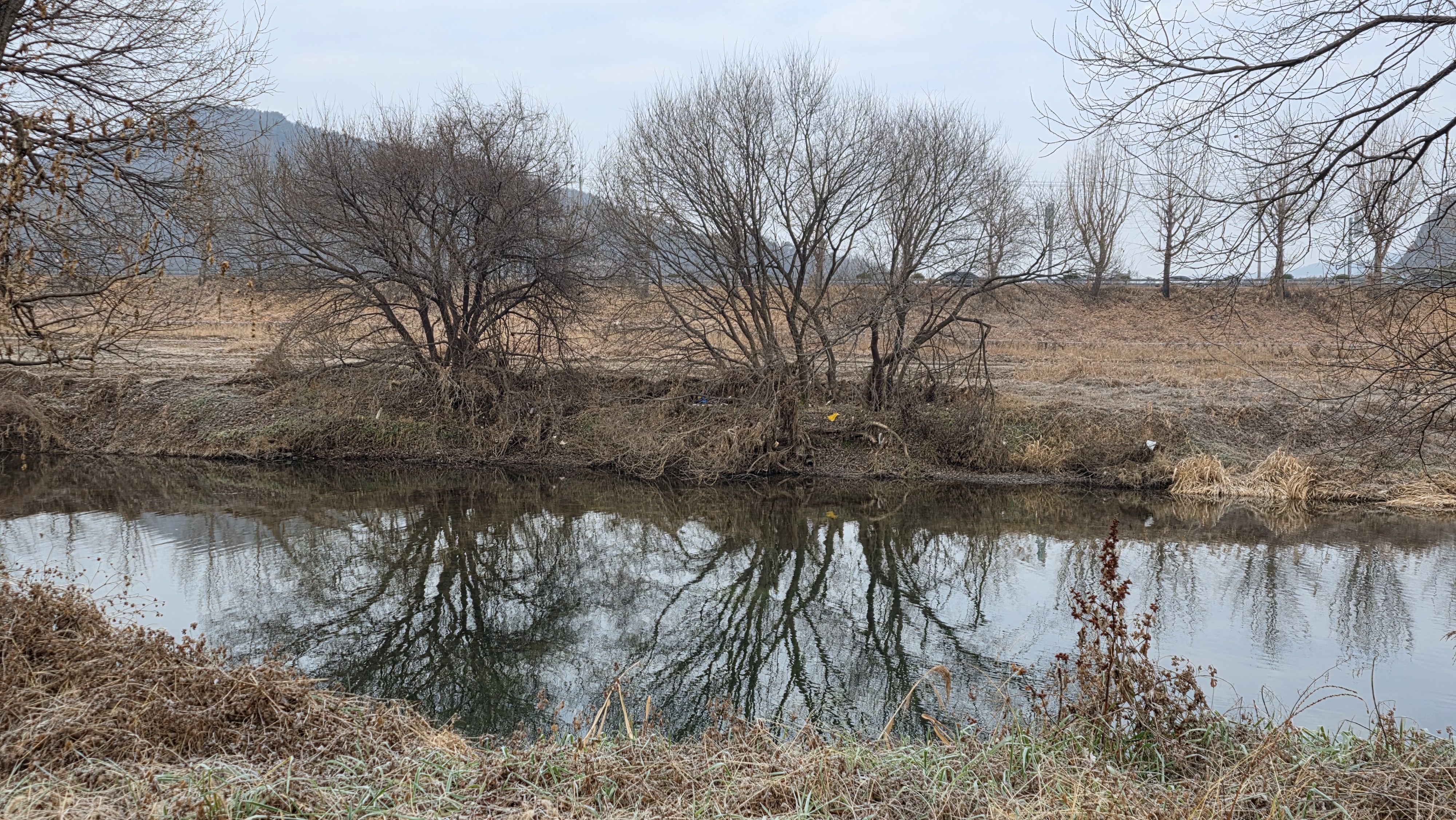 아침 찬바람에 마스크를 쓰고 모자 달린 점퍼를 단단히 입고 정안천 생태공원길을 걸으면서 주변 풍광을 즐겼다. 특히 정안천 냇물의 물오리들의 천국을 부러워했다. 자연 현상은 미묘하고도 묘미가 있다고나 할까 이런 현상에 순응하는 것이 인간이 아닌가 생각하면서 산책길을 걸었다.