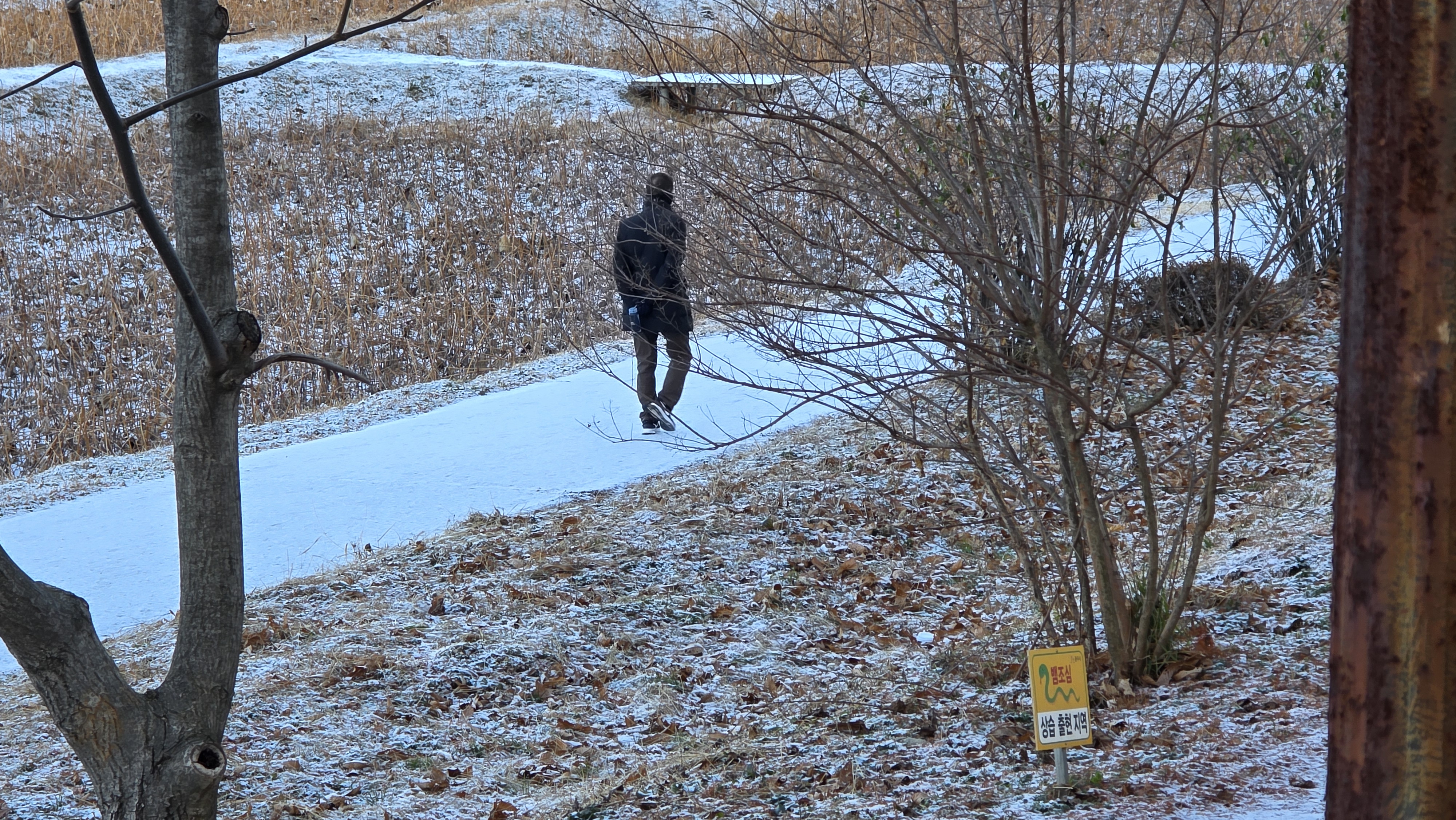 이미 걷는 사람이 보인다. 저 멀리까지는 쓸 필요성을 못 느껴서 적당한 곳에서 멈췄다. 조금이라도 눈을 쓸 수 있었다는 데 즐거움을 느꼈다.
