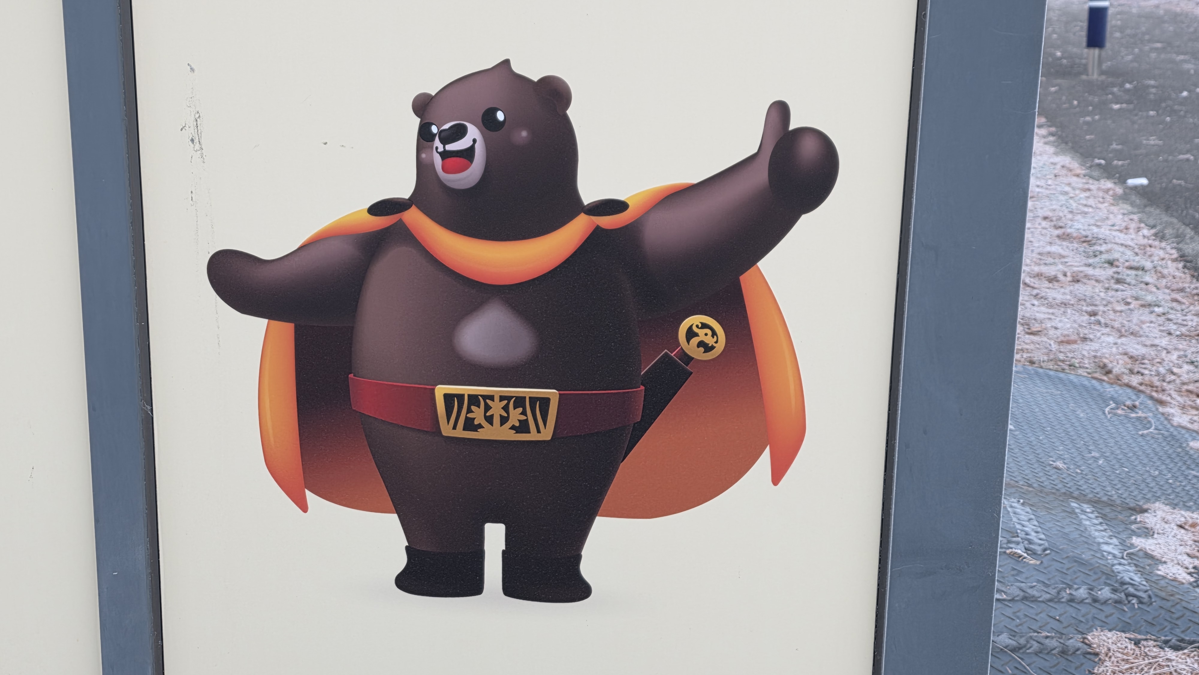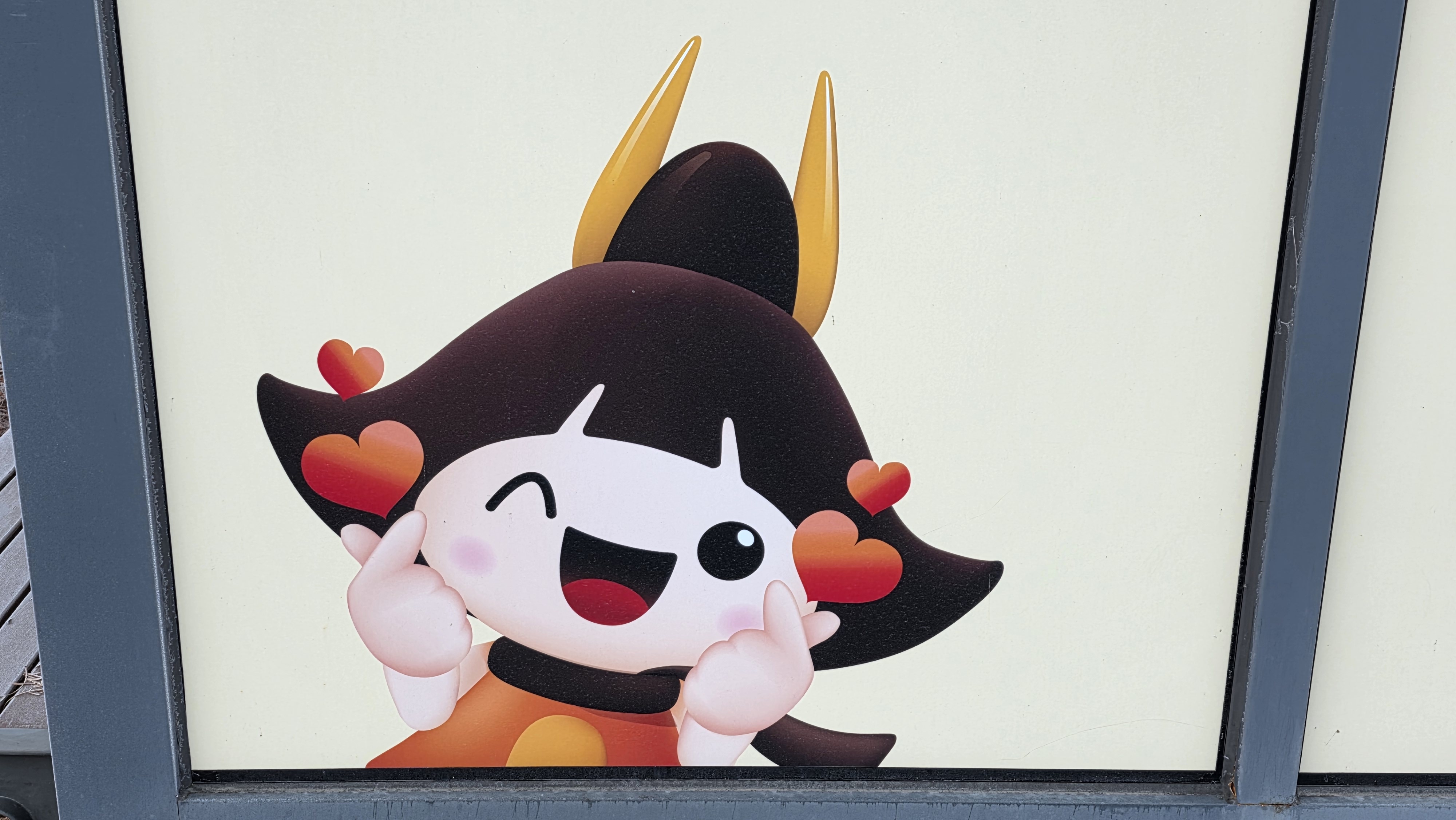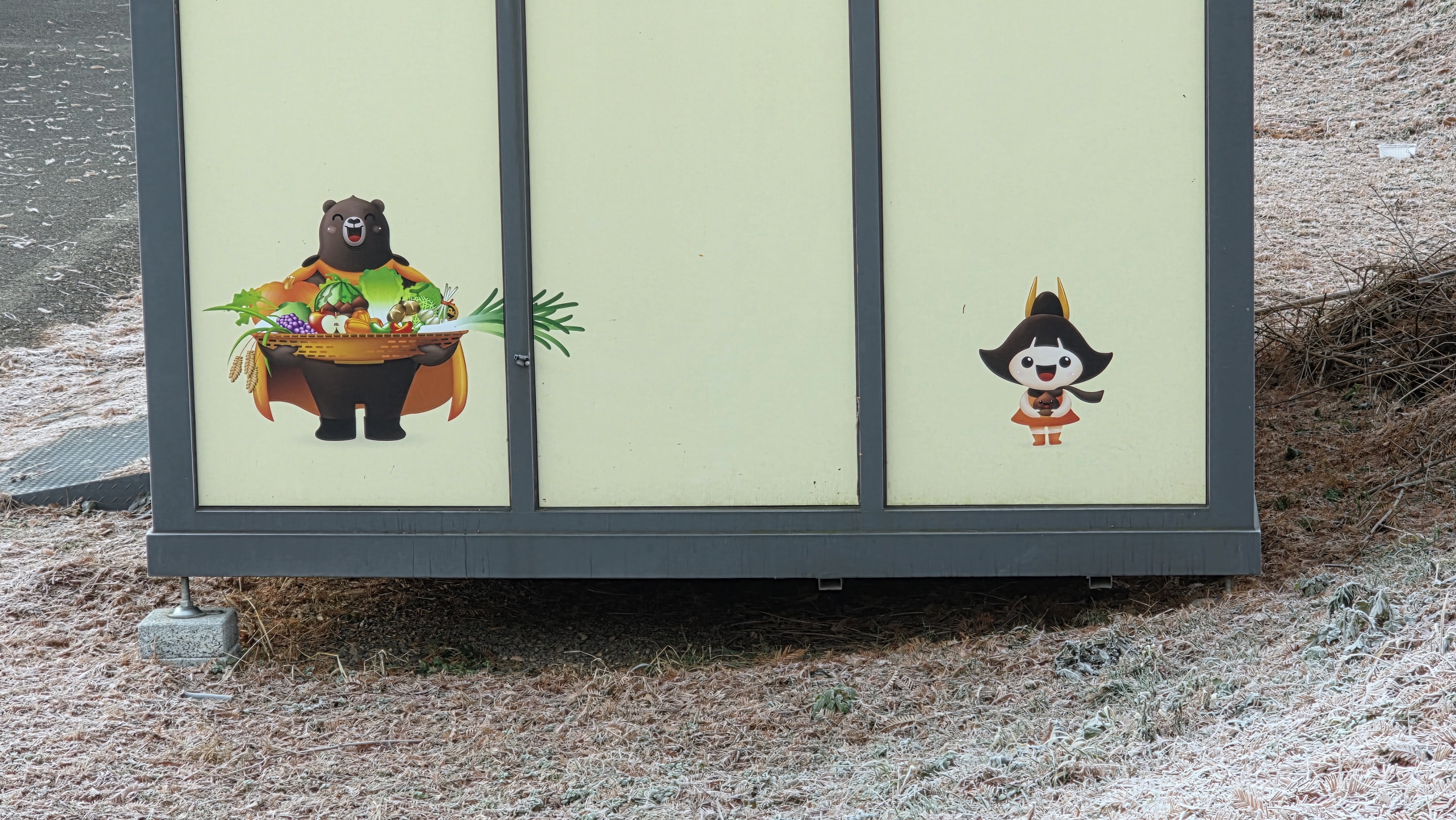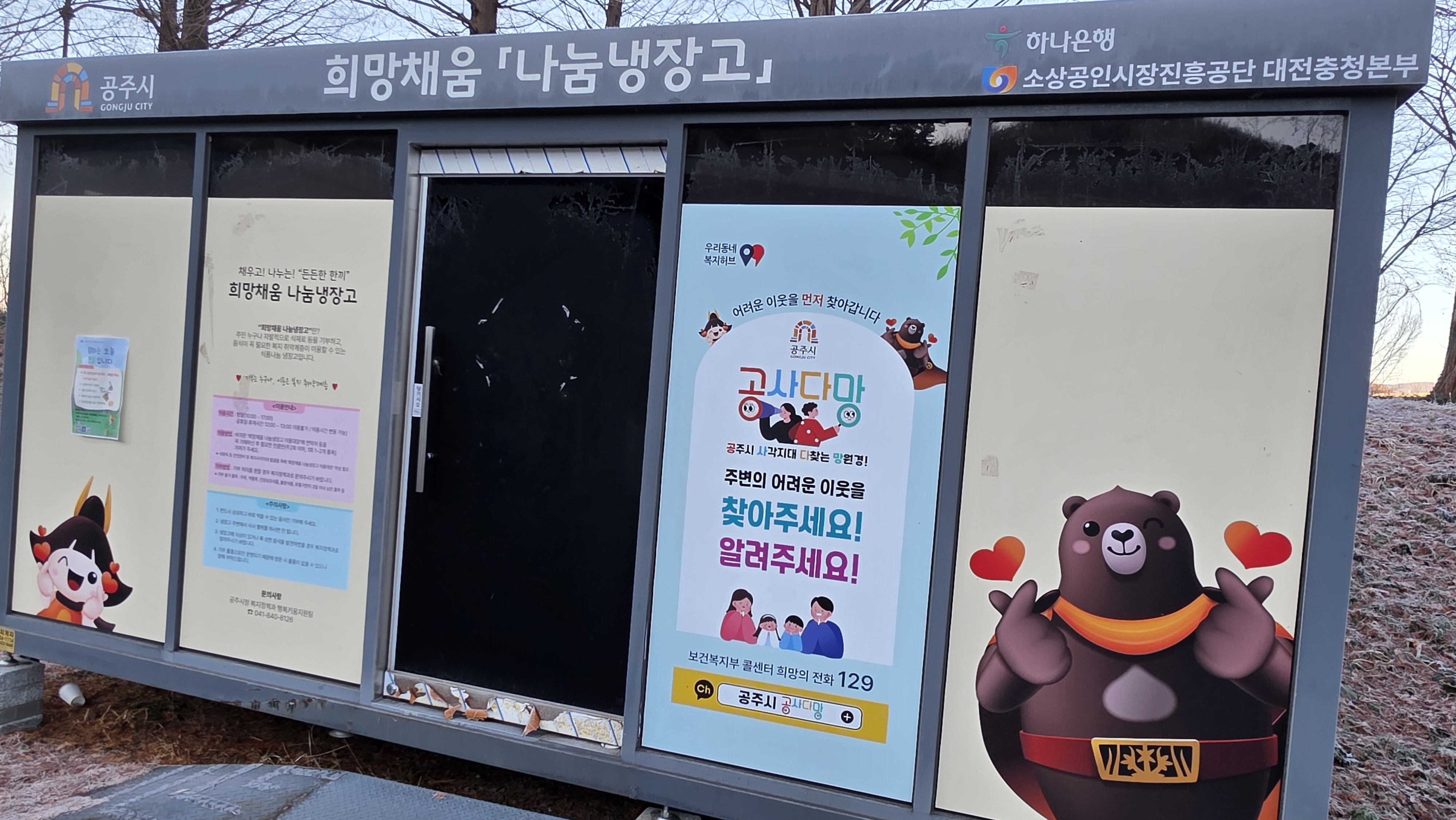희망채움 '나눔 냉장고' 주변의 문양들입니다. 공주시의 캐릭터인 고마곰과 공주가 보입니다.