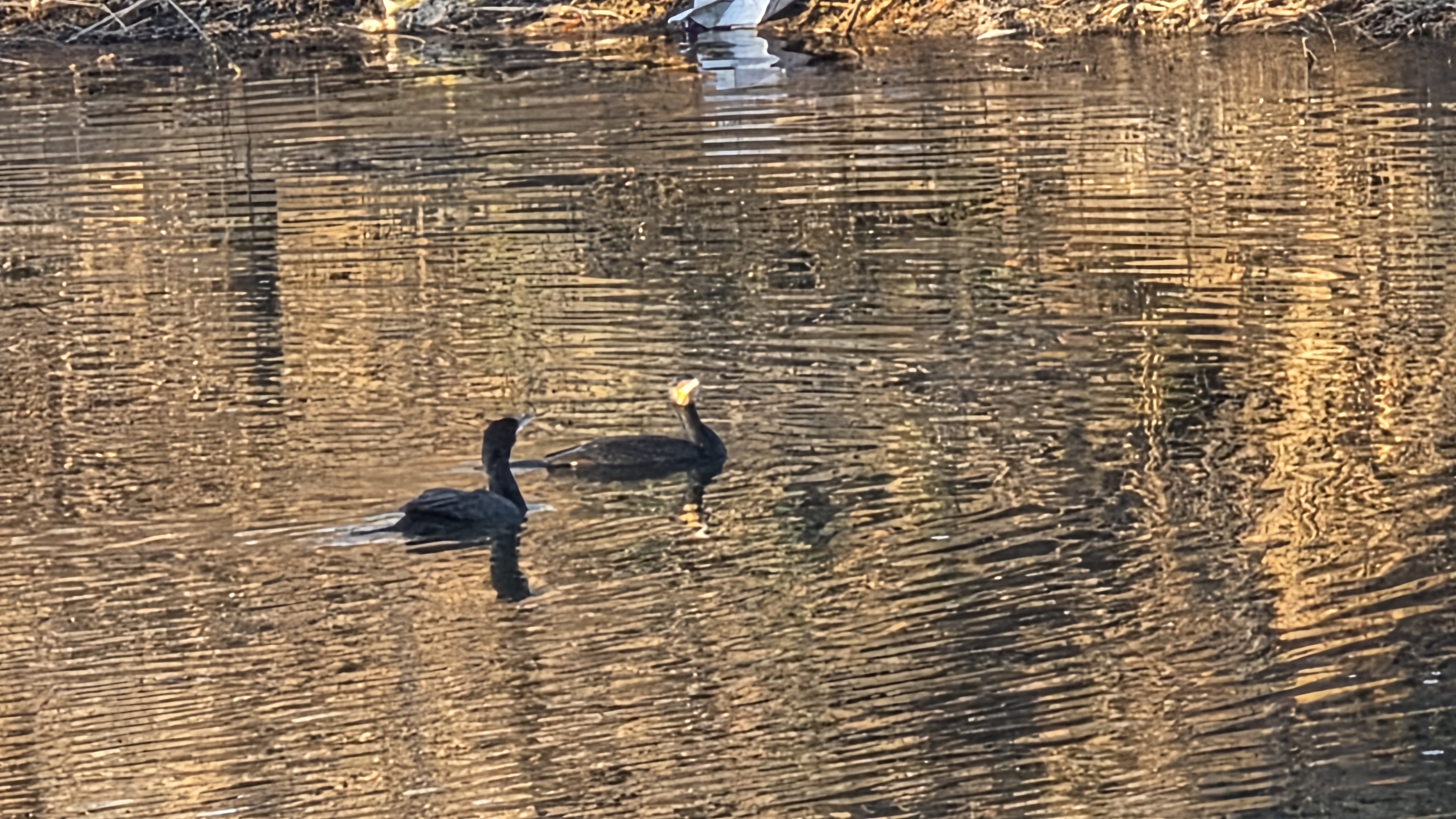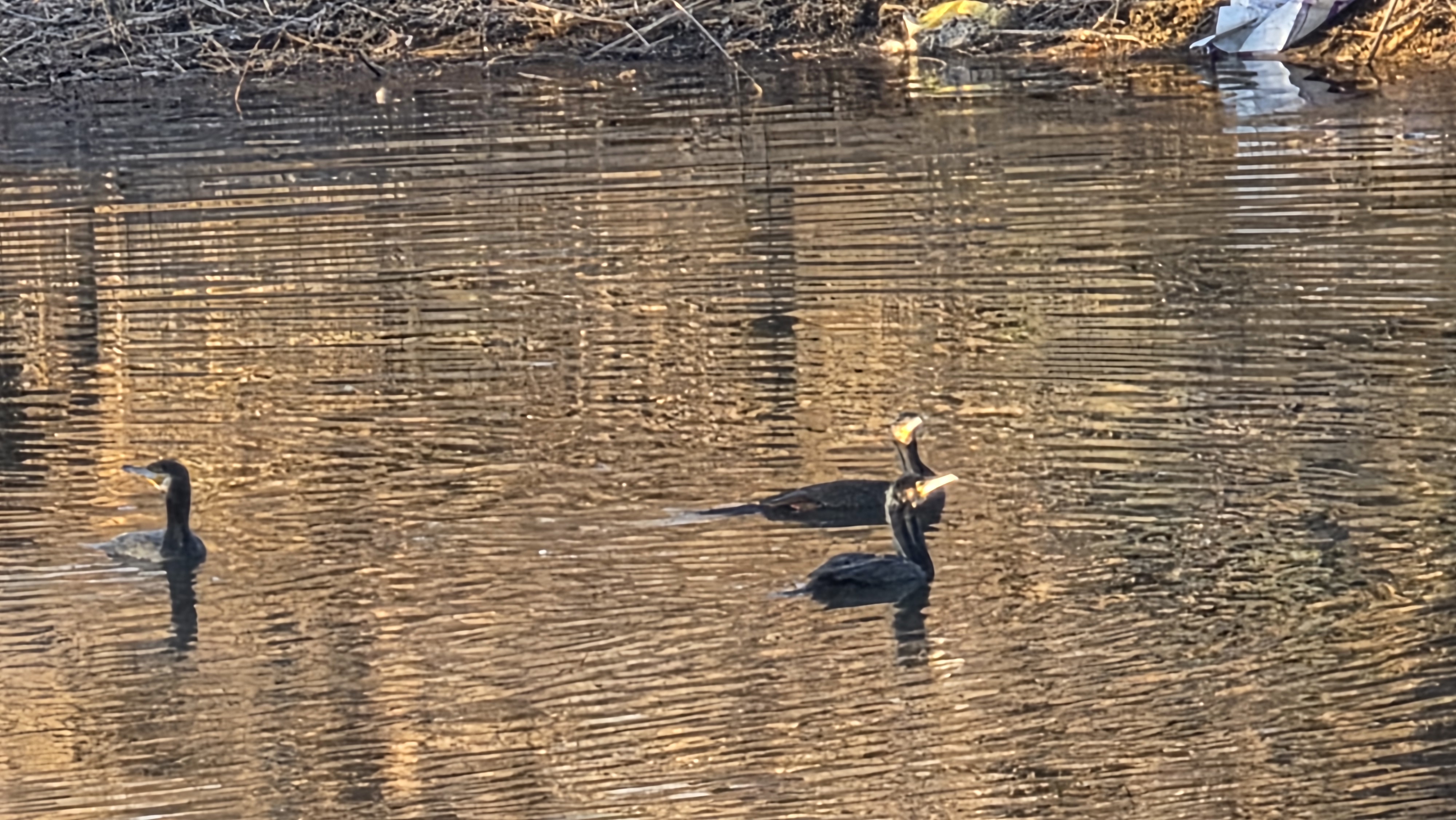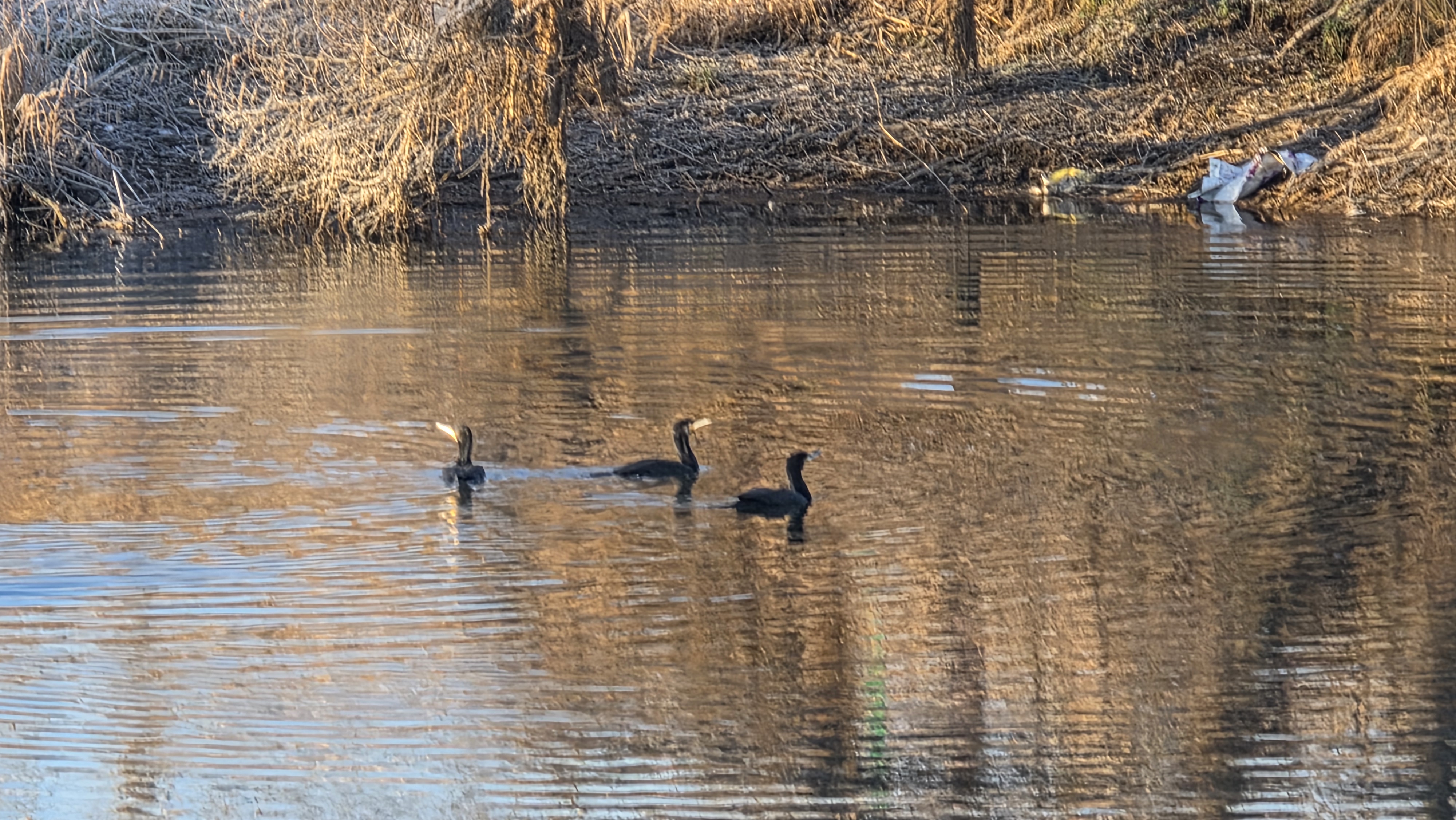 정안천 냇물의 흰 뺨 검둥오리들입니다.