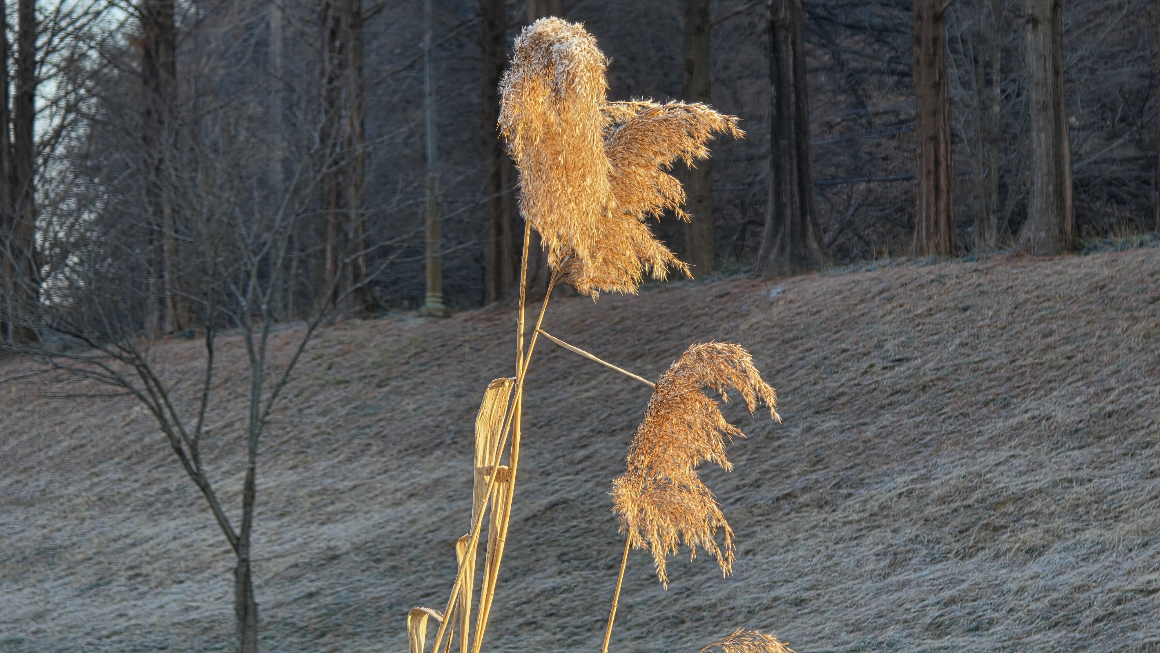 화장실 건너편의 버드나무 형상은 오늘 다시 봐도 그럴싸한 모습이다. 연못의 갈대들이 곳곳 하게 서 있는 모습과 잎 진 메타세쿼이아가 대조를 이루는 모습이다.