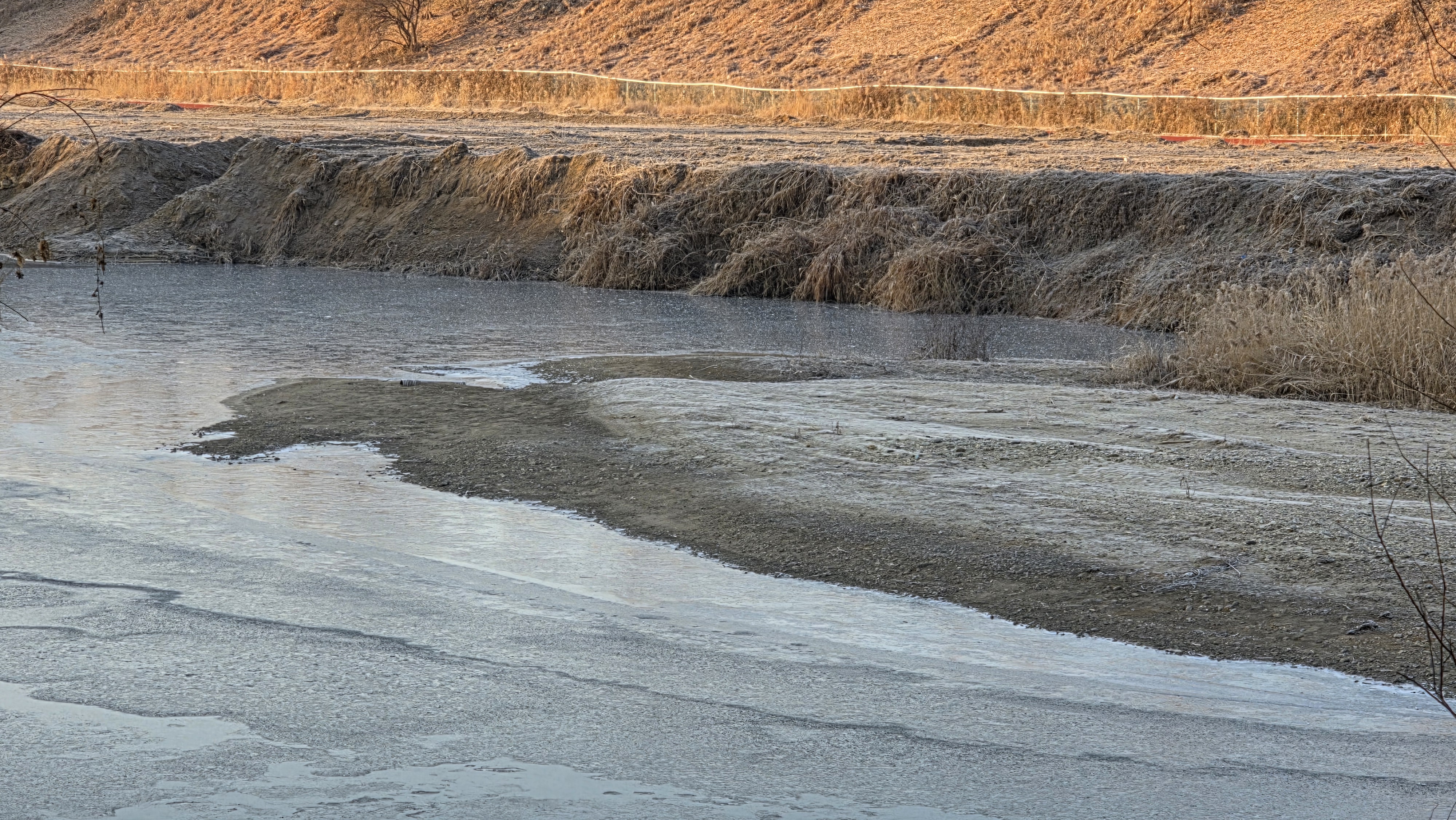 정안천 냇물이 반쯤은 얼었다.