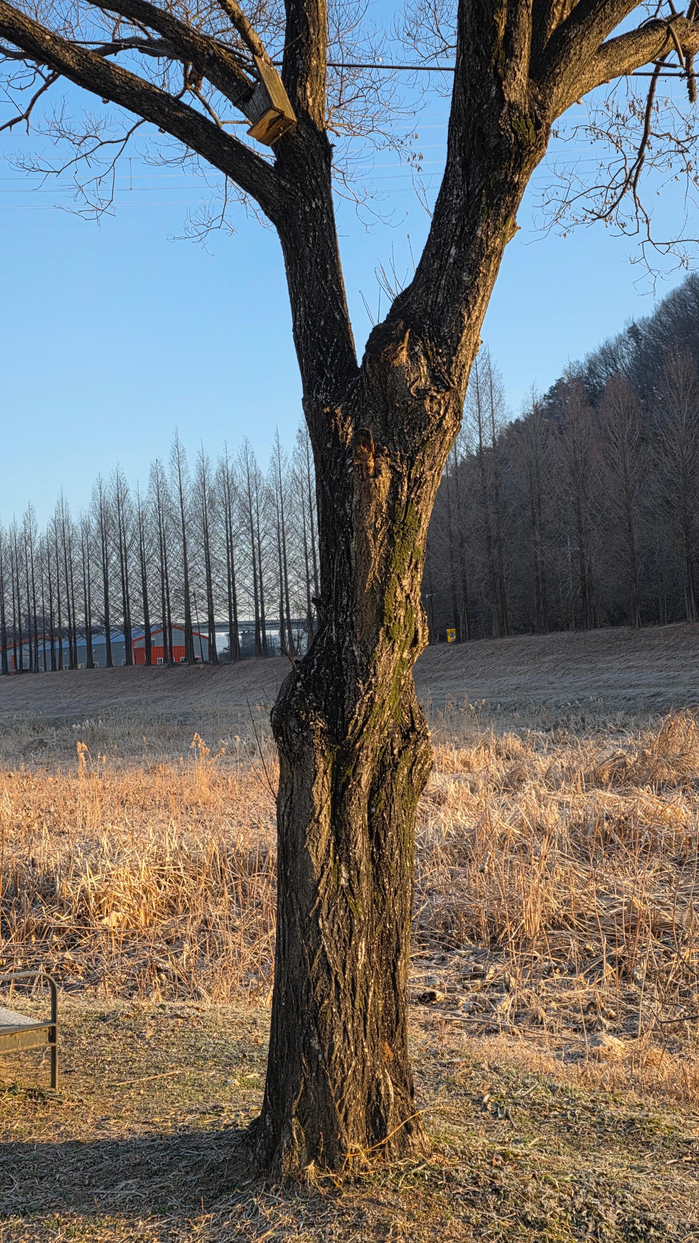 멀리 메타세쿼이아나무 우둠지의 까치집이 보이는 곳이다.