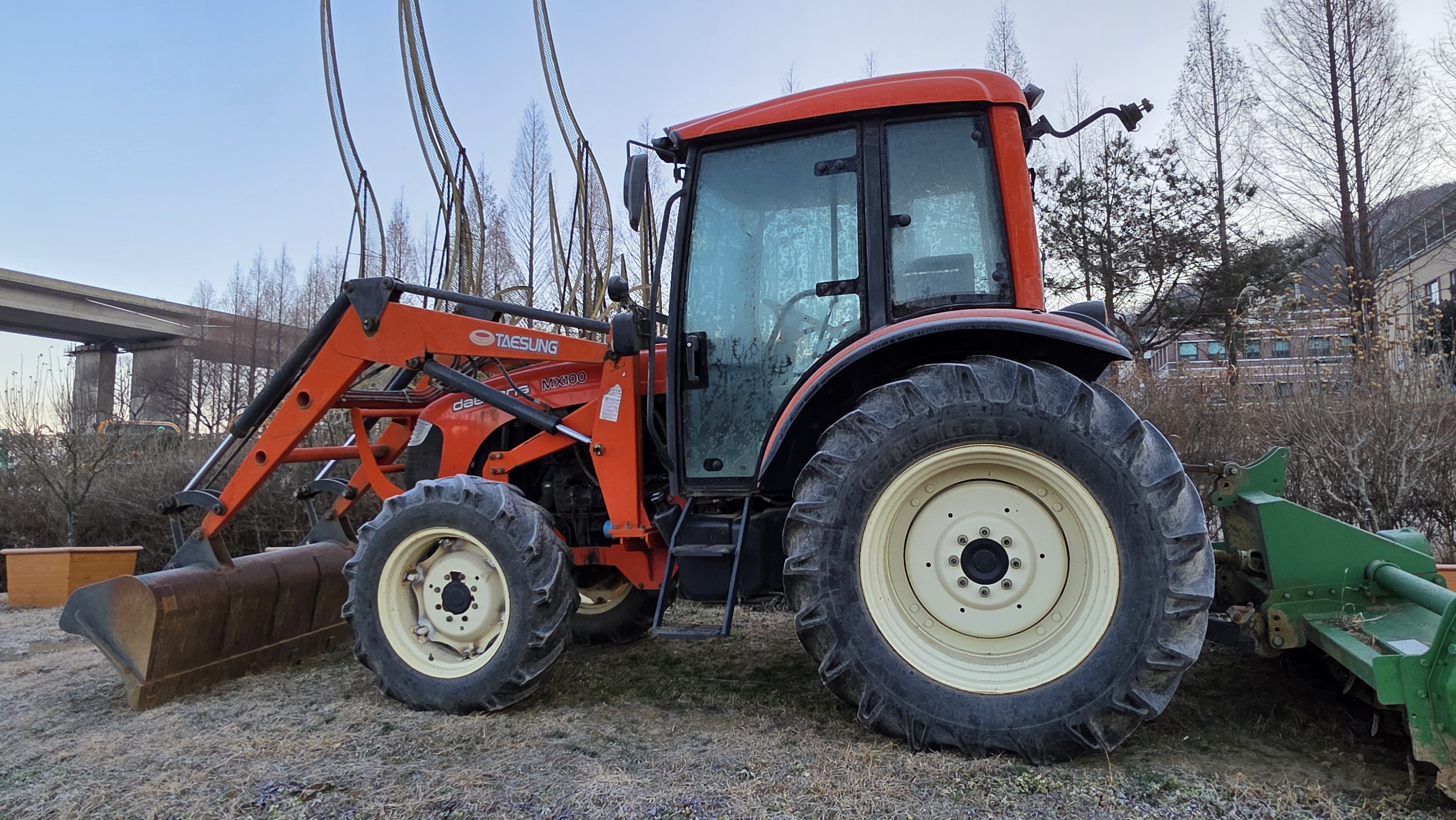 연못가를 돌다가 공원길 준비소 밖에 세워둔 트랙터를 보니 바퀴 크기가 엄청 크다. 내 키보다 더 커 보인다. 엄청난 힘을 가진 트랙터는 공원길 닦는데 화초를 가꾸는 과정에서 수시로 쓰일 것이다.