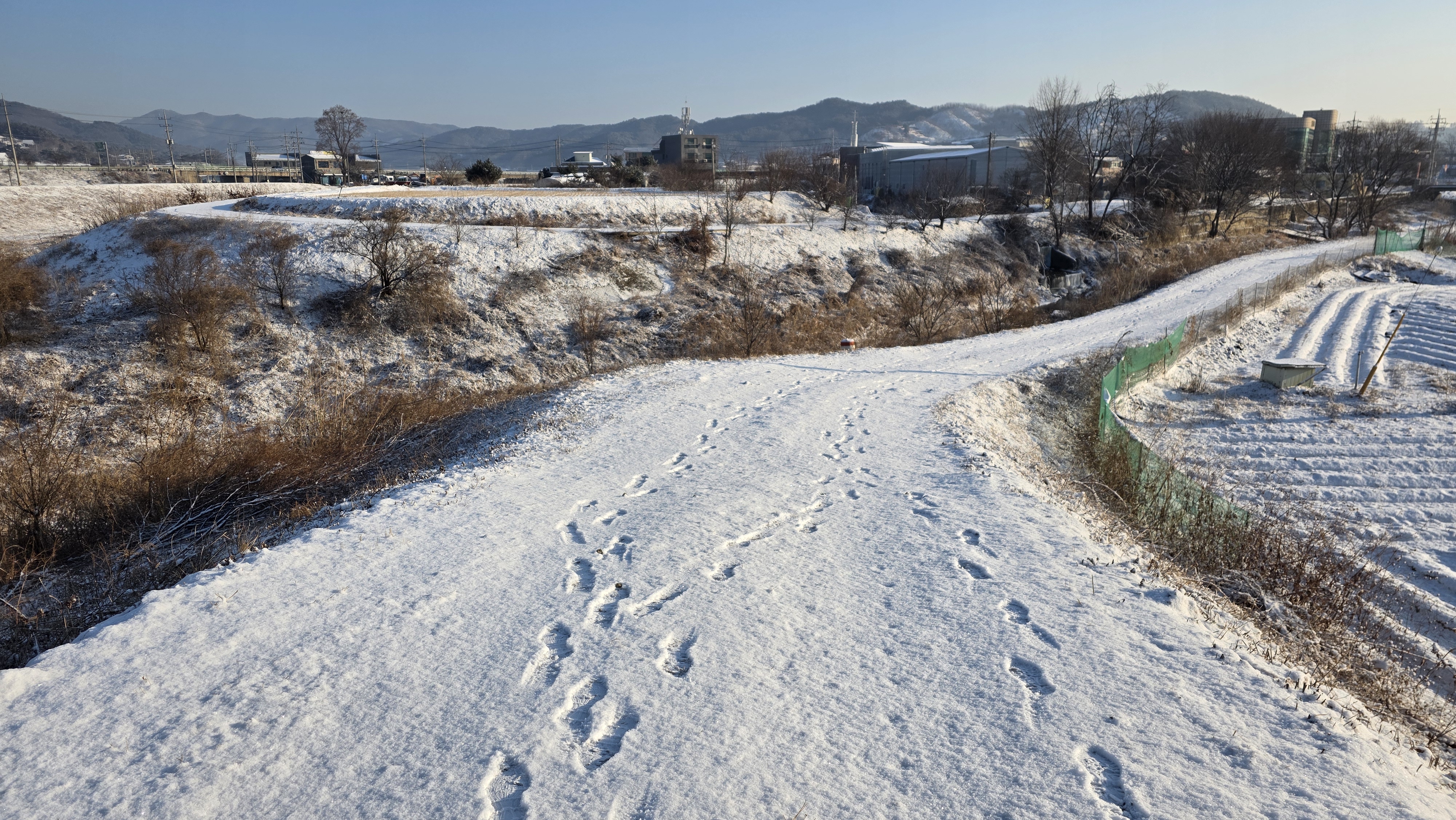 먼저 걸어간 사람들의 발자국이 선명하다. 뽀드득 거리는 소리 들으면서 걷는 눈길 걷기가 좋다.