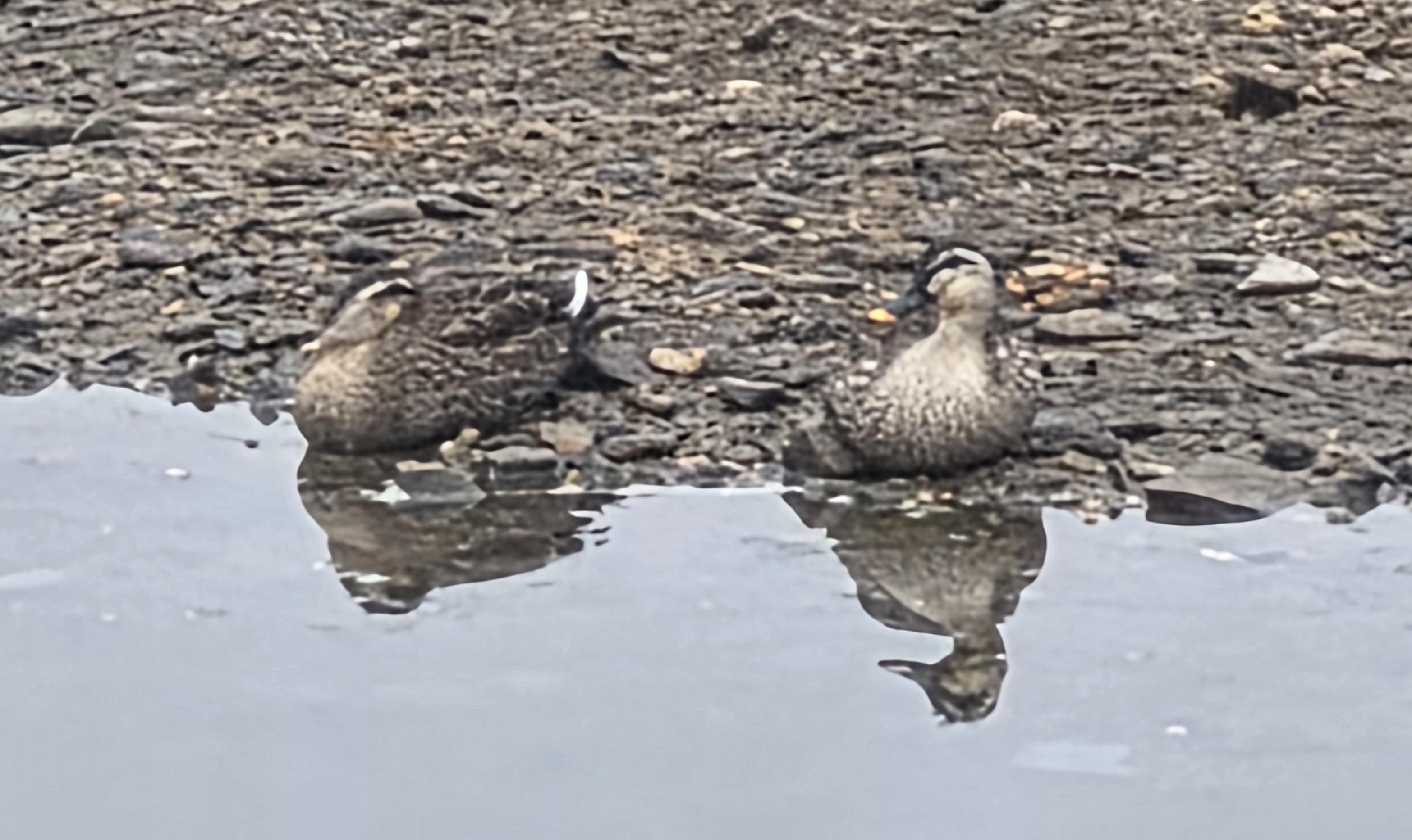 흰뺨검둥오리가 대부분이고 오늘은 가마우지는 없지만, 백로와 왜가리가 각각 한 마리씩 보였다. 정안천 모래톱에 길게 모여 앉아서 미동도 않는 물오리 그 뒤 편에 멀리 따로 떨어진 곳에 백로와 왜가리가 보인다.