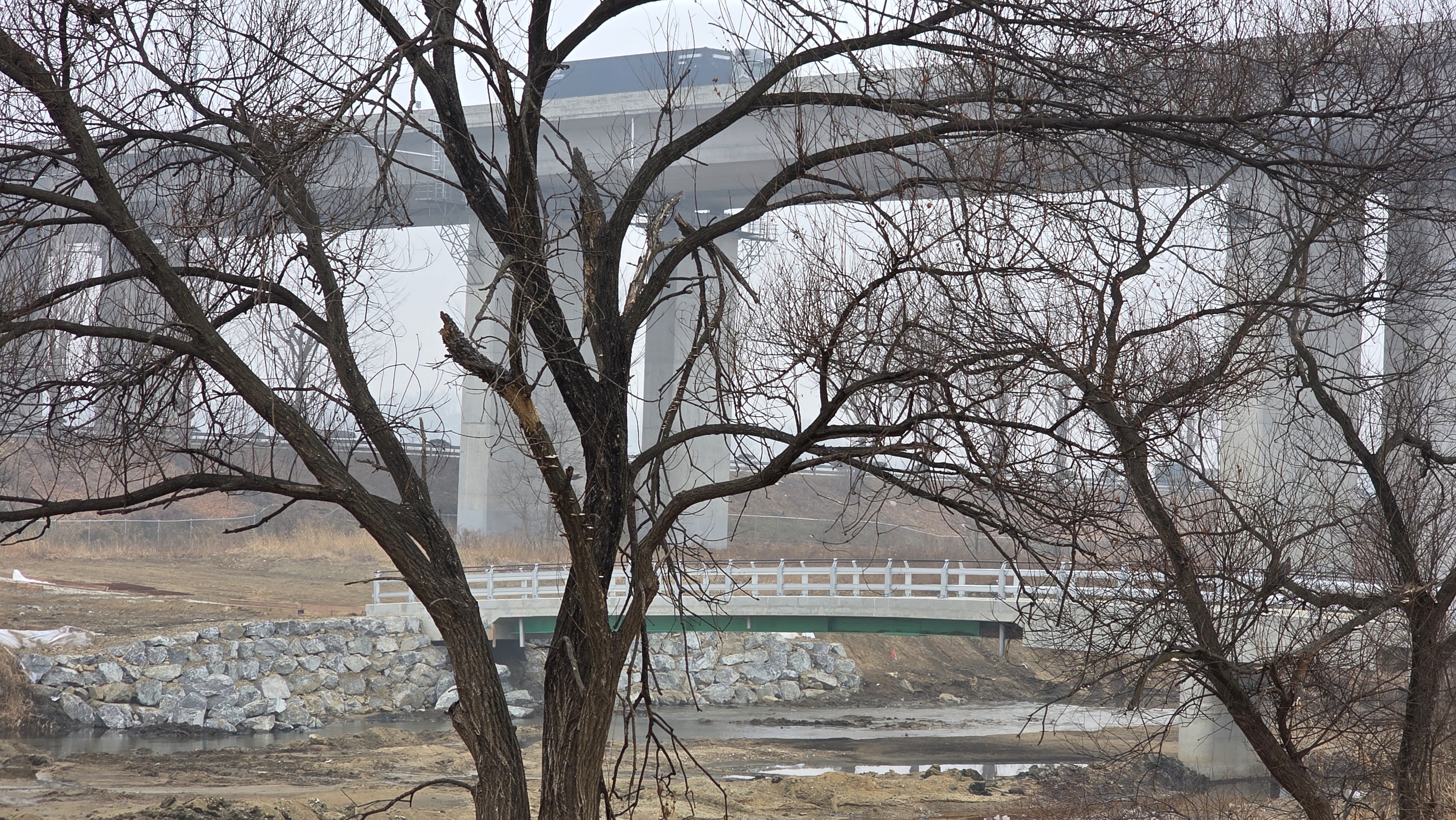 지금 정안천은 겨울 가뭄으로 물이 적다.