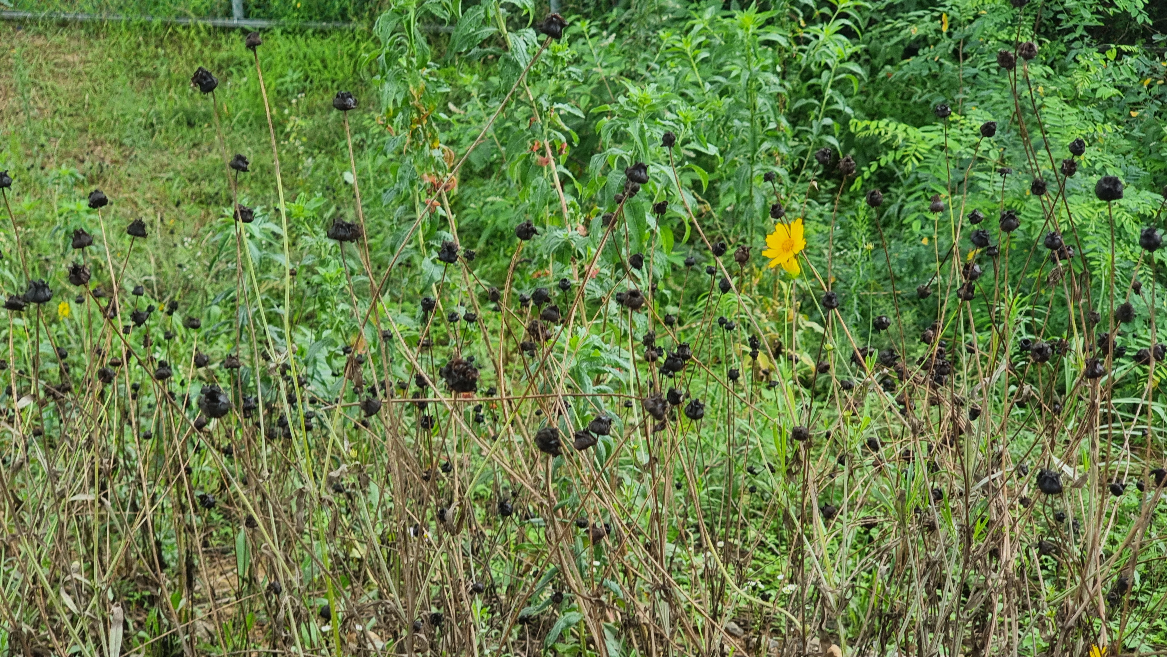 2024년 7월 19일 연못가 메타세쿼이아길에서 이어지는 청룡리 둑길을 걷다 보면 꽃길이 꽃길이 아니다. 그 환하던 금계국 노란 물결이 다 갔다. 이제 꽃이 진다. 무슨 꽃이나 거의 그렇듯이 지는 꽃 치고 예쁘게 보이는 게 없다. 금계국 꽃도 지는 모습이 말이 아니다. 시커먼 몰골로 보기 흉하게 지고 있다. 꽃은 피기 전 꽃봉오리와 막 피려는 모양이 보기 좋고 활짝 핀 꽃을 사람들은 좋아하는데 이렇게 지는 꽃은 보기 흉하다. 사람이 늙어가는 모습 같다. 멋지게 늙는 사람도 있지만, 사람도 늙을 땐 거의 다 추해 보인다. 젊을 때가 좋다. 사실이 그런 걸 어쩌랴? 까맣게 씨가 맺힌 금계국 모양이 이제 내 뒷 생애를 위하여 기꺼이 사라진다는 뜻 같아 보인다. 오래도 폈던 금계국인데 이렇다. 하기는 아직도 노..