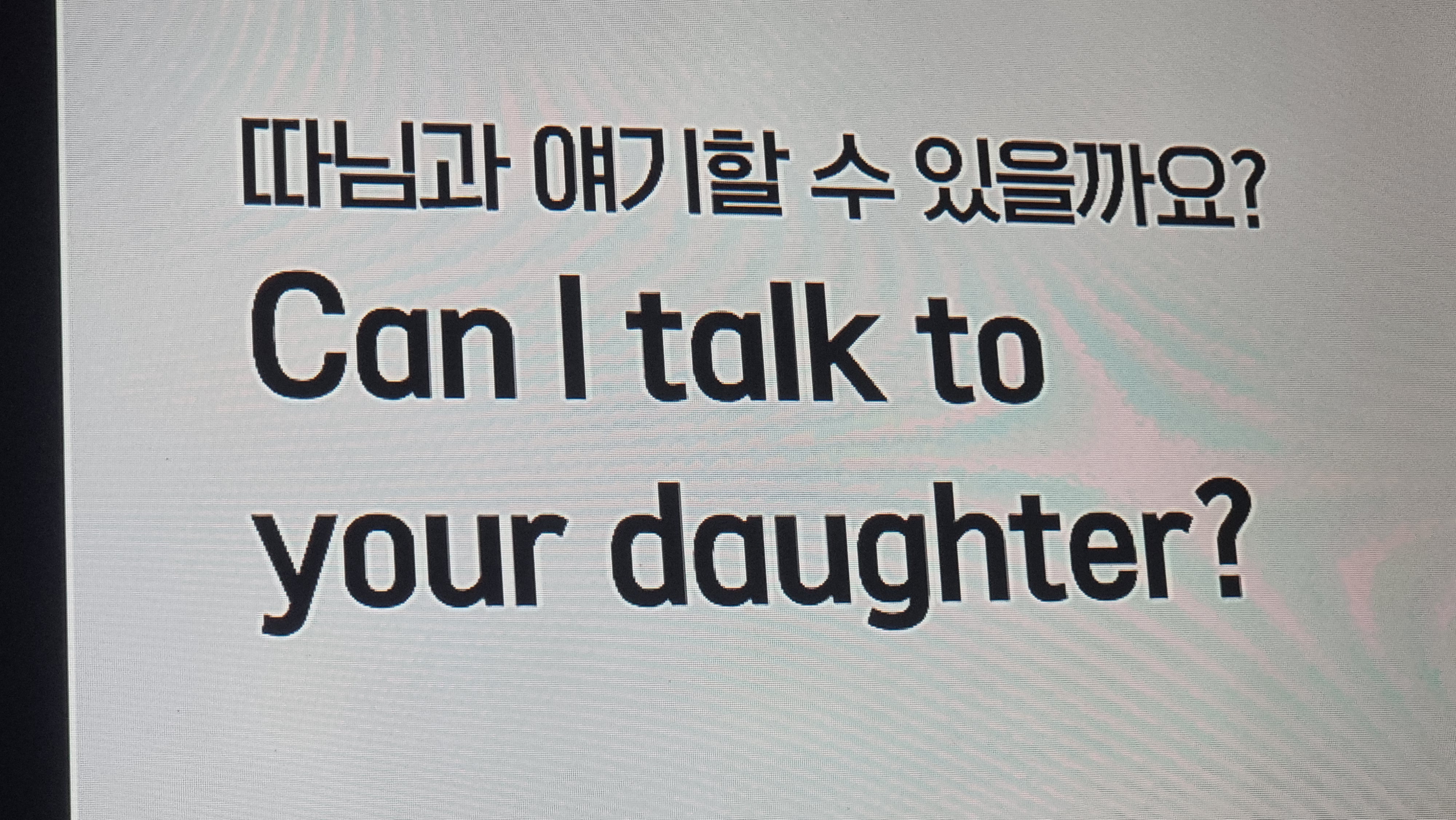 따님과 얘기할 수 있을까요? 2024년 7월 19일 EBS 프로 '왕초보 영어'를 시청하면서 참고가 될까 하는 생각에서 TV 화면을 담았다.알 듯하면서도 모르는 것도 있고 처음 보는 단어도 나오고 한 오늘의 공부 내용이 나한테 그리 쉬운 게 아니라는 생각이 들었다. 시간 내어 다시 볼 기회가 있을 거라 믿고 또 나와 비슷한 능력의 다른 사람에게도 도움이 된다면 다행이라는 생각에서 여기에 옮긴다. 자료실/교육참고 2024.07.20