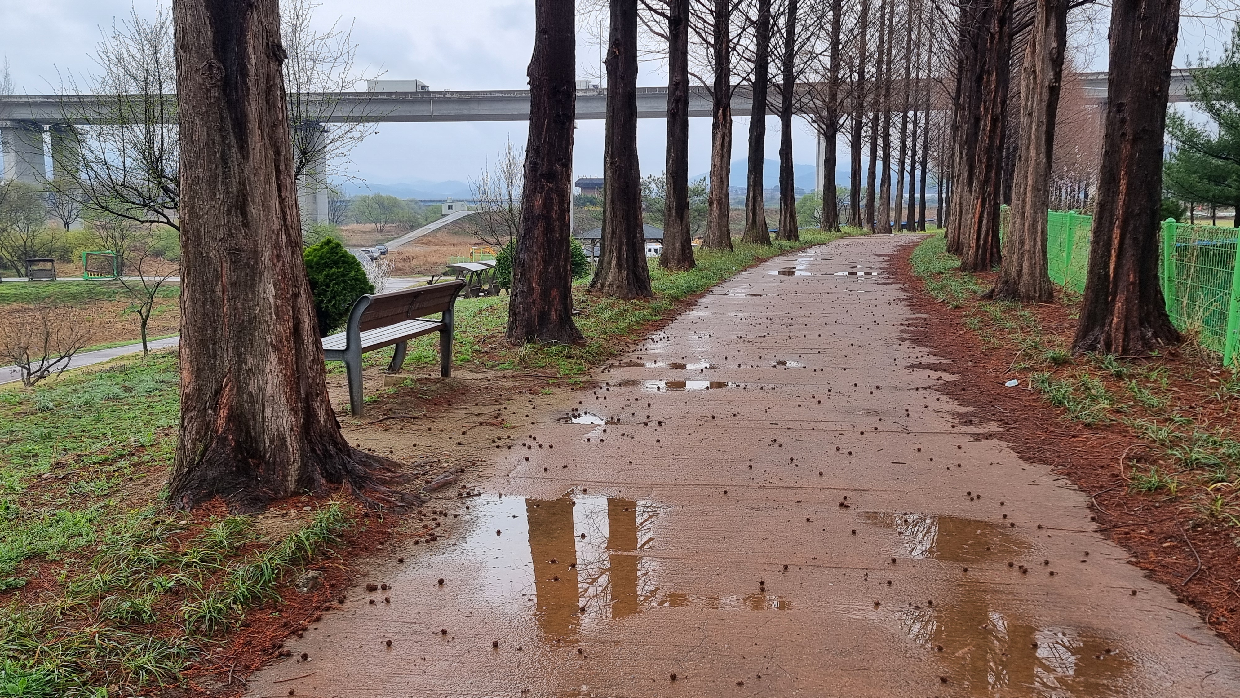 2026년 4월 10일 금요일날이 싸늘하다.그래도 봄이다.개나리가 노랗게 나를 가까이 오라고 유혹한다. 메타세쿼이아도 이제 푸릇한 기운이 돋는 듯하다. 사진으로 그걸 자세히 나타내지 못하겠다. 여기도 봄기운이 돋는다. 복숭아꽃이 메타세쿼이아길 옆에서 환히 폈다. 안 쳐다볼 수 없다. 청룡리 둑길을 걷는데 바람이 차다. 그래도 의무감으로 나는 걸었다. 걷다가 돌모루 아주머니와 면사무소 앞 심 씨 아저씨를 만났다. 반가운 분들이다. 열심히 사는 사람들이다. 메타세쿼이아는 오늘도 봄을 맞이하고 있다. 오늘 순간적으로 작은 새 한 마리를 만났다. 참새 같은데 순간적으로 얼른 순간 포착한 모양이다. 그냥 지나치려다가 또다시 활짝 핀 개나리를 다시 본다. 지금 어디를 가나 벚꽃이 한창이다. 자세히 보면 벚꽃도 여러..